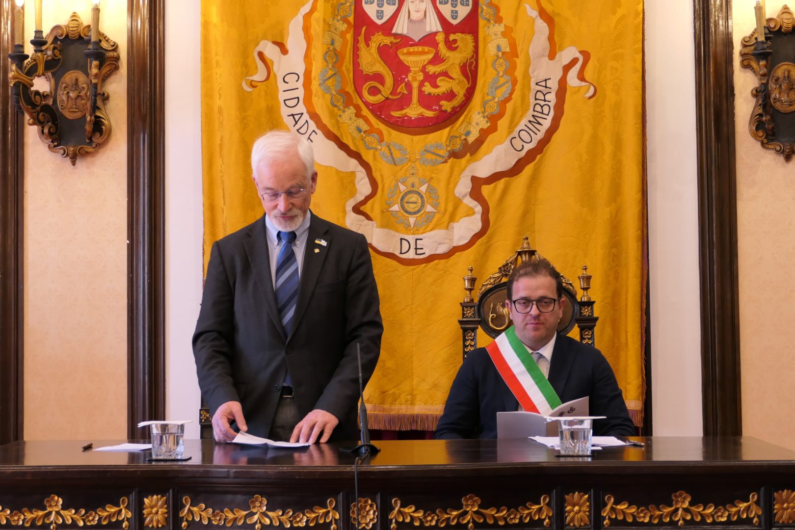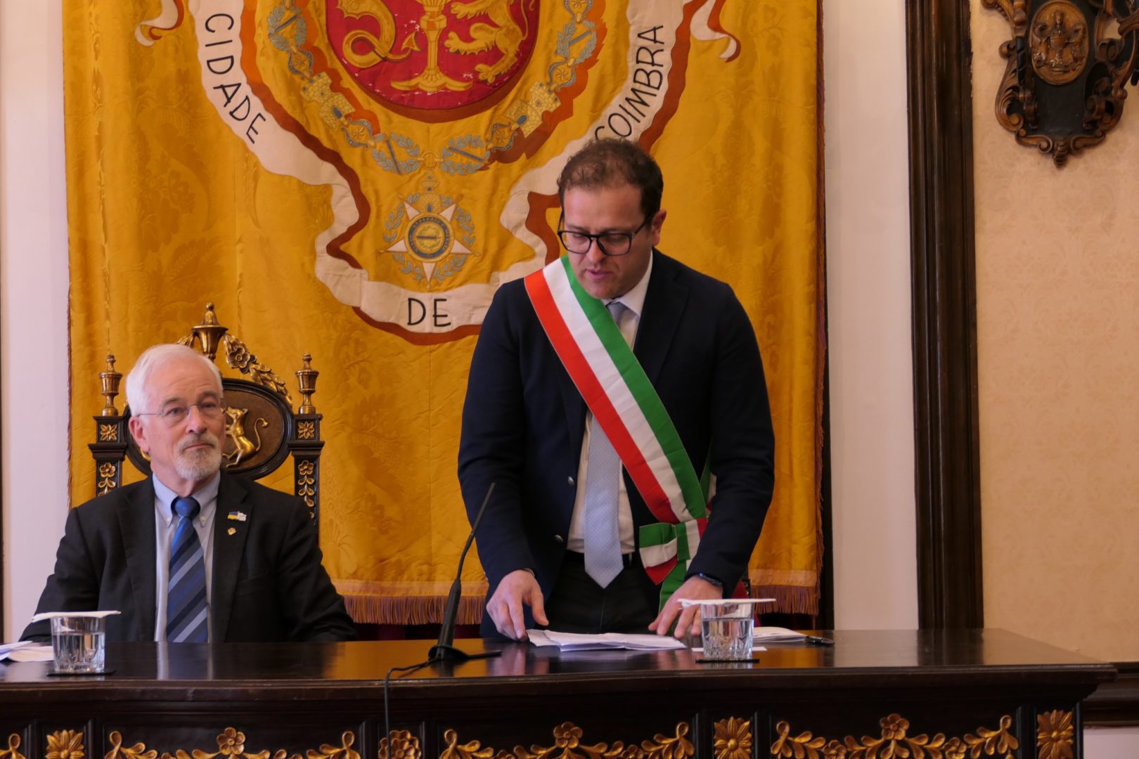 “Estou seguro de que estas sólidas e históricas relações entre as nossas cidades e países terão impacto também nas áreas educativas, formativas e sociais, atribuindo dimensão, diversidade, interação e criatividade a uma geminação nova que envolve municípios e territórios que se projetam para o futuro, transportando a sabedoria e os ensinamentos dos exemplos da sua história milenar”, assegurou o presidente da CM de Coimbra, José Manuel Silva. Por sua vez, o presidente da CM de Narni, Lorenzo Lucarelli manifestou “o desejo que as nossas duas cidades continuem a apoiar-se mutuamente no futuro, ligadas por uma amizade imperecível, também como o bronze, e separadas apenas por um braço marítimo de possibilidades”.