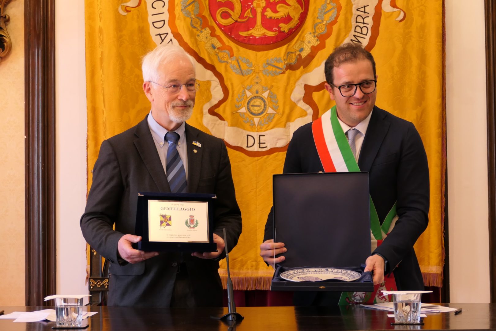 A geminação dos municípios de Coimbra e de Narni foi aprovada, por unanimidade, na reunião de Câmara de 20 de dezembro de 2019. A assinatura do acordo esteve agendada para março de 2020, mas foi adiada devido à suspensão de todas as deslocações por causa da pandemia de Covid 19, acabando por acontecer no passado sábado, dia 15 de abril, pelas 15h30, no Salão Nobre da CM de Coimbra.