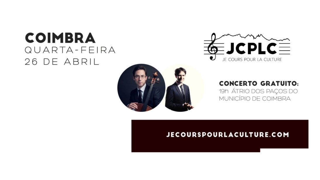 Esta é a terceira edição da iniciativa e prevê que músicos de prestígio internacional se encontrem com diferentes públicos e, com eles, vivenciem momentos inesquecíveis, levando a música a diferentes partes de França e Portugal. “Je Cours Pour La Culture” vai passar por Portugal entre 23 e 29 de abril. A corrida por terras lusas, tem início em Lisboa e términus em Bragança, estando prevista a passagem por Coimbra no dia 26 de abril, com paragem marcada às 19h00, no átrio da CM de Coimbra, onde vai decorrer um concerto do violinista Gauthier Herrmann e o pianista Emmanuel Christien, com entrada gratuita.