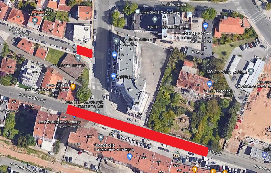 Dada a natureza dos trabalhos, largura da via e o normal volume de tráfego existente durante o período diurno, há a necessidade de condicionar a circulação rodoviária, através de circulação alternada, regulada por agentes de autoridade, na rua do Brasil. Já na rua do Teodoro, o trânsito ficará cortado, estando assinalados os devidos desvios.