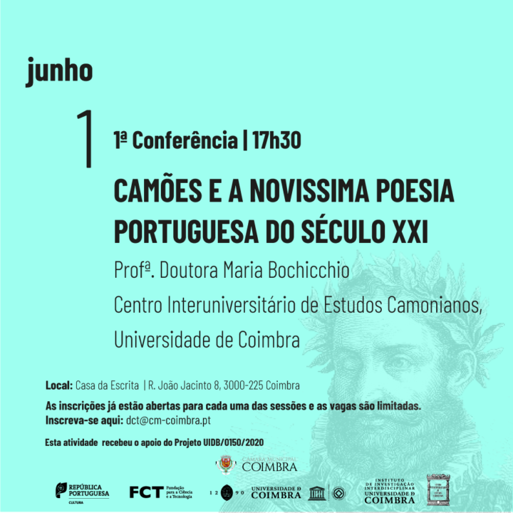 A primeira sessão decorre já na próxima quinta-feira, dia 1 de junho, sob o tema: “Camões e a novíssima poesia portuguesa do século XXI”. Dirigido a estudantes, professores, investigadores e a toda a comunidade interessada em explorar a presença da obra camoniana na poesia e na arte portuguesa dos séculos XX e XXI, a frequência do curso é gratuita (com limitação de vagas) e confere certificado de presença aos participantes. Os interessados em participar devem inscrever-se via e-mail para o endereço: dct@cm-coimbra.pt.