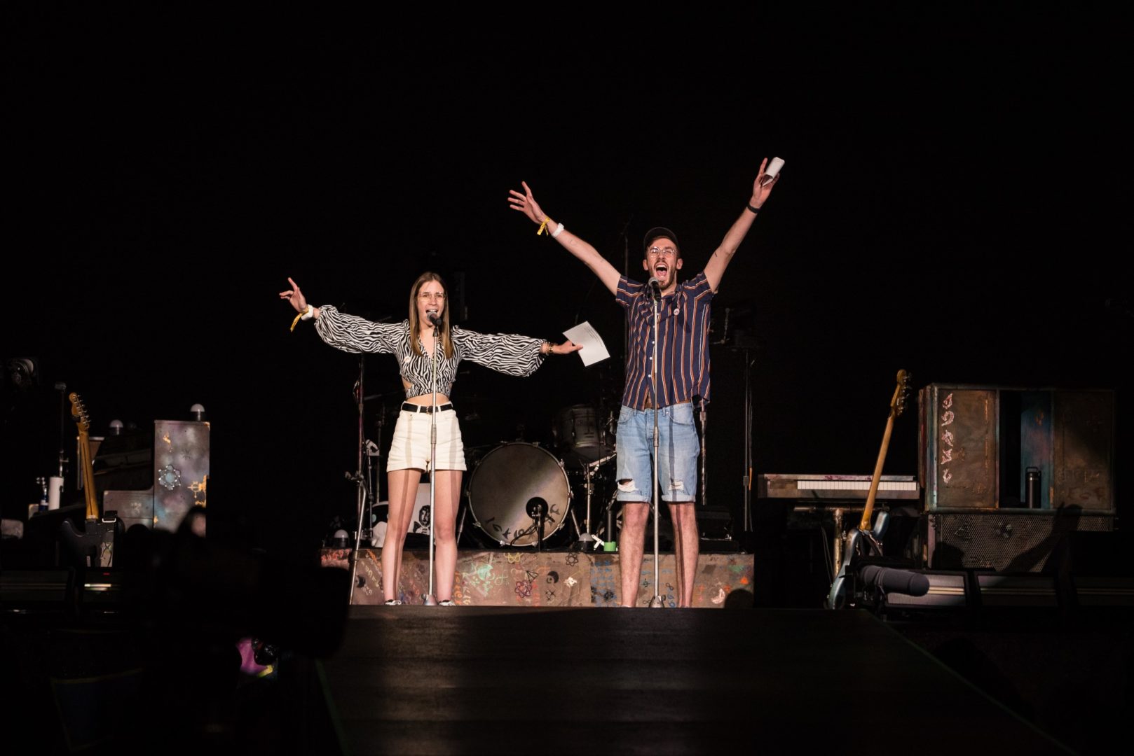 “Paradise”, “The Scientist”, “Viva la Vida”, “Yellow” e “Fix You” foram alguns dos temas que mais fizeram vibrar o público, mas o momento alto da noite foi quando a banda britânica fez um ‘bis’ a “A Sky Full os Stars”. Chris Martin pediu aos fãs para desligarem os telemóveis e para se deixarem levar pelo espetáculo musical, mas também visual, que “pintou” o Estádio Cidade de Coimbra de diferentes cores.