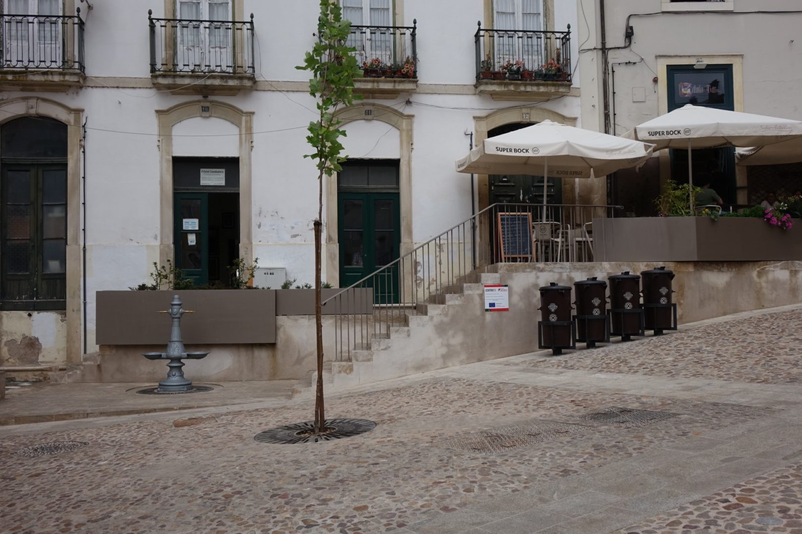 Para evitar o recurso excessivo a opacos muros “construídos”, foram aplicados, em alguns pontos do espaço requalificado, gradeamentos em ferro, que garantem a proteção contra quedas. Noutros pontos, a delimitação dos espaços e a proteção contra quedas foi conseguida através da colocação de floreiras – elementos fixos, em ferro, cuja robustez garante a sua permanência e durabilidade. A introdução de novos elementos, bem como a reconfiguração de outros, permitem, agora, potenciar o prazer de estar no Largo da Sé Velha e todo o espaço envolvente.
