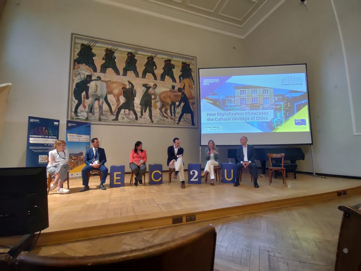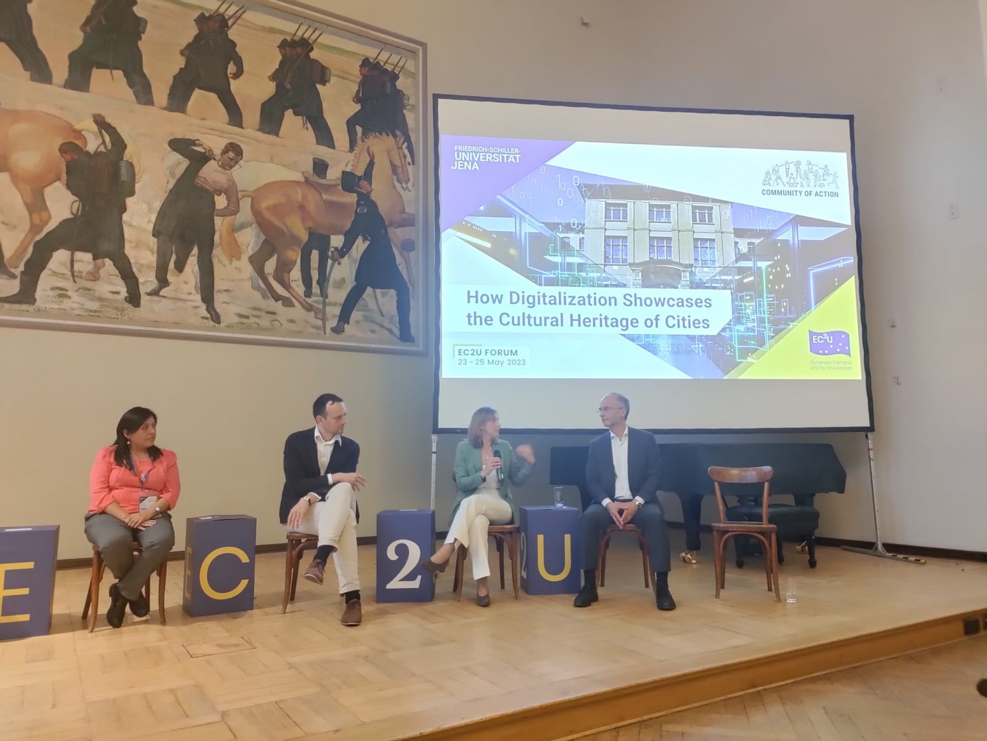 A CM de Coimbra participou no Conselho Plenário da Aliança, onde tem assento como Entidade Parceira, e teve oportunidade de consolidar o trabalho em rede com os Municípios da Aliança, nomeadamente Jena. Pela primeira vez foi organizado no Forum da Aliança, uma sessão dedicada à rede de trabalho dos Municípios EC2U e respetivas candidaturas europeias em curso. Esta sessão intitulada “How digitalization Showcases the Cultural Heritage of Cities” foi moderada pelo Município de Coimbra, através da chefe do GRII, Joana Gouveia Loureiro, e permitiu apresentar a candidatura conjunta dos Municípios EC2U ao programa Interreg, assim como casos concretos de soluções digitais concebidas para valorizar o património cultural, tornando-o mais acessível e integrado nas estratégias de desenvolvimento das cidades.