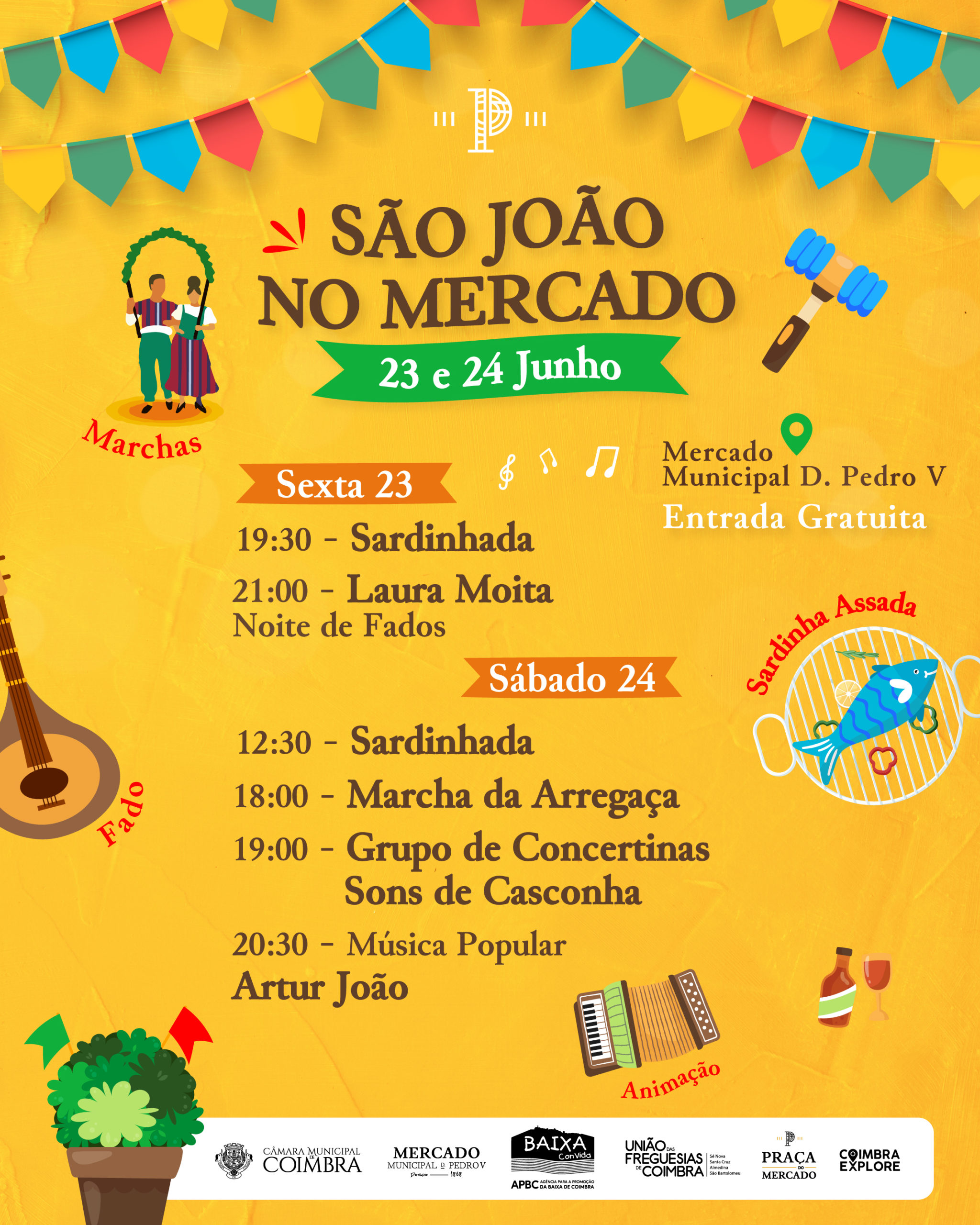 “O Município, a União das Freguesias, a APBC e a Renasceia, todos se sentaram à mesma mesa a colaborar para a dinamização do Mercado Municipal D. Pedro V”, afirmou Miguel Fonseca, vereador da Câmara Municipal de Coimbra com o pelouro dos Mercados Municipais e Feiras, na apresentação do evento que decorreu esta segunda-feira. Sublinhando o “cariz popular” desta iniciativa, Miguel Fonseca convidou toda a cidade a participar e festejar “o São João à moda de Coimbra no nosso Mercado Municipal, um espaço que se pretende que faça cada vez mais parte dos hábitos de quem vive na cidade”.