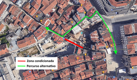 Neste período deverá utilizar-se a Rua da Sofia como caminho alternativo.