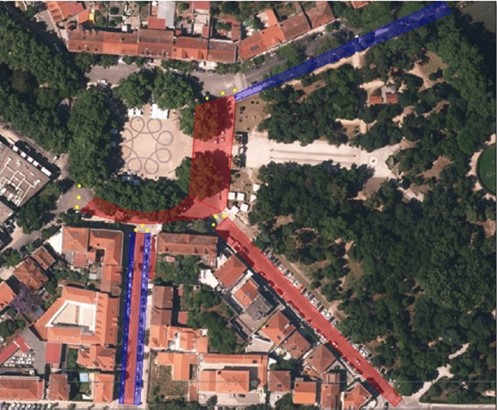 - A proibição de ocupação do espaço público, com esplanadas e outro equipamento de apoio aos estabelecimentos, dentro das manchas azul e vermelha, da imagem infra, devendo o mobiliário ser removido durante o prazo estipulado, entre os dias 30 de junho e 8 de julho, das 20h00 até ao final dos espetáculos de cada um dos dias;