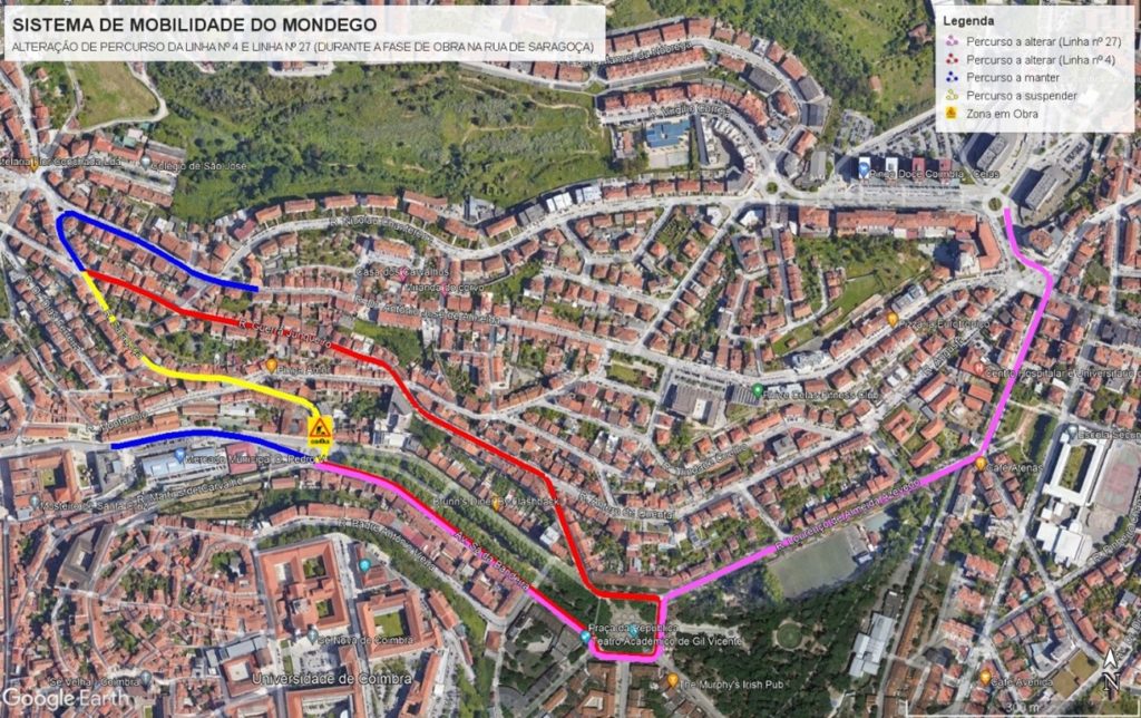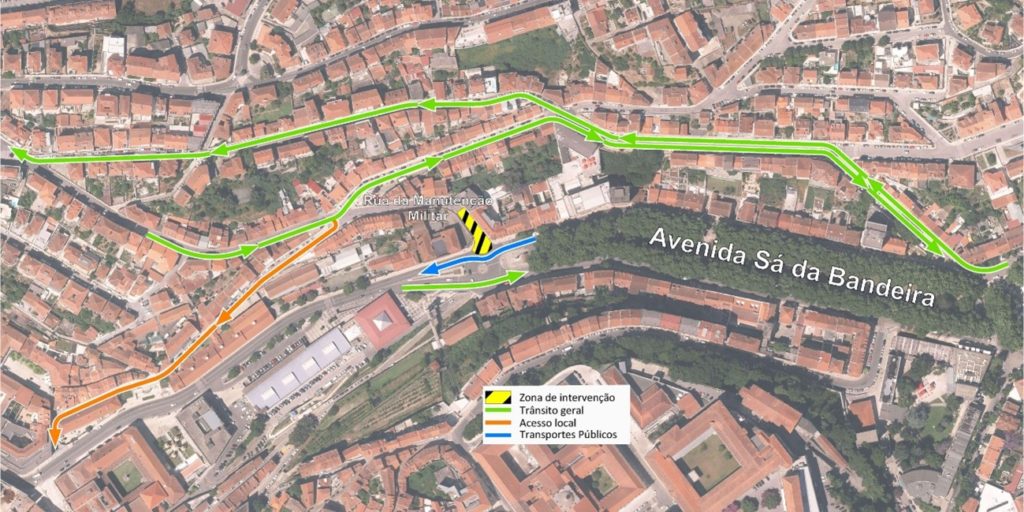 O condicionamento de trânsito, que se estima durar até ao final de julho de 2023, resulta da execução de infraestruturas da empresa municipal Águas de Coimbra, com o objetivo de remodelar as redes de abastecimento de água e de drenagem de águas residuais domésticas e pluviais, previamente à construção do canal do Metrobus.