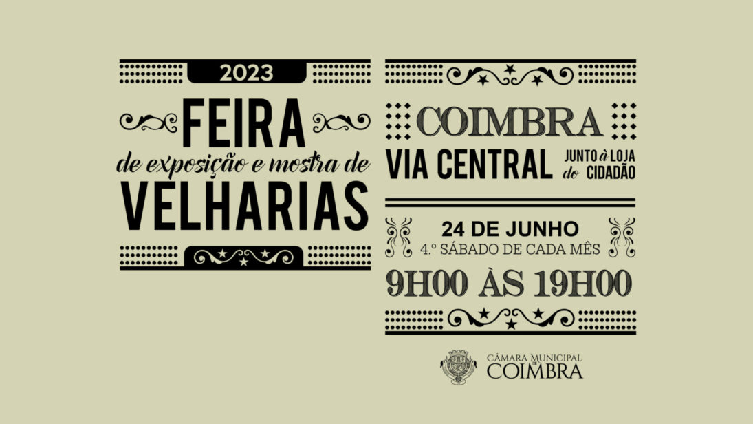 A Câmara Municipal (CM) de Coimbra promove mais uma edição da Feira de Velharias, no próximo sábado, dia 24 de junho, das 9h00 às 19h00, na Via Central, junto à Loja do Cidadão. Dezenas de expositores voltam a trazer a este espaço da Baixa da cidade uma multiplicidade de antiguidades que serão exibidas em mais uma edição da Feira de Velharias de Coimbra.