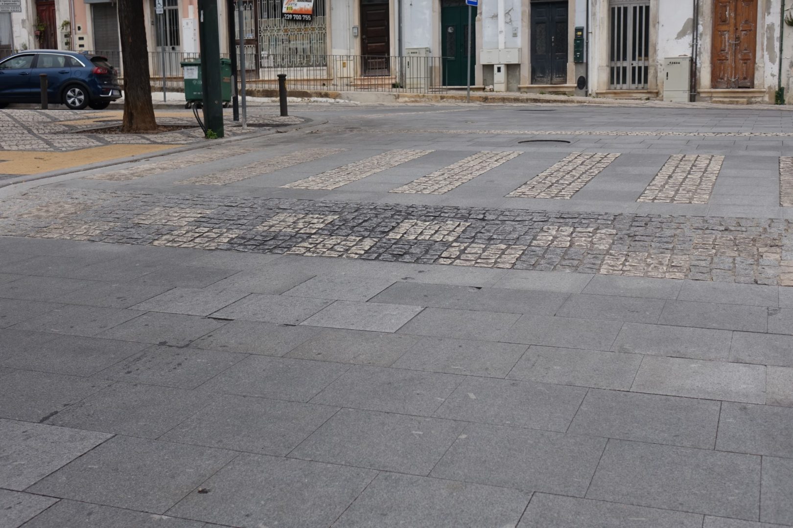A requalificação dos passeios foi outro importante elemento desta empreitada, para além da reordenação do estacionamento. A aplicação de calçadinha de calcário em substituição da calçada grossa existente trouxe uma sensação de maior conforto e garantiu uma maior regularidade nos pavimentos pedonais. A continuidade estética teve como objetivo “dar continuidade aos pavimentos pedonais da Rua da Sofia onde, há já muito tempo, existe calçadinha pequena branca e preta com estereotomia de linhas paralelas e perpendiculares”, refere a ficha técnica da obra. “A requalificação deste espaço é um incentivo à revitalização e à valorização do edificado, que contribuirá para uma diversidade social, económica e ambiental”, conclui o mesmo documento.