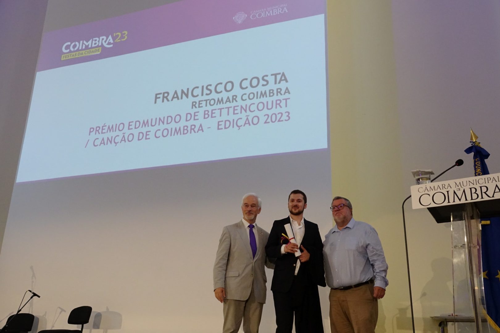 A cerimónia comemorativa do Dia da Cidade arrancou com um momento musical por Francisco Costa, vencedor da edição do Prémio Edmundo Bettencourt 2023, com o disco “Retomar Coimbra – Fado e Canção de Coimbra”. De seguida, Francisco Costa recebeu a distinção das mãos do vereador Francisco Queirós, que fez ainda um breve enquadramento do Prémio.
