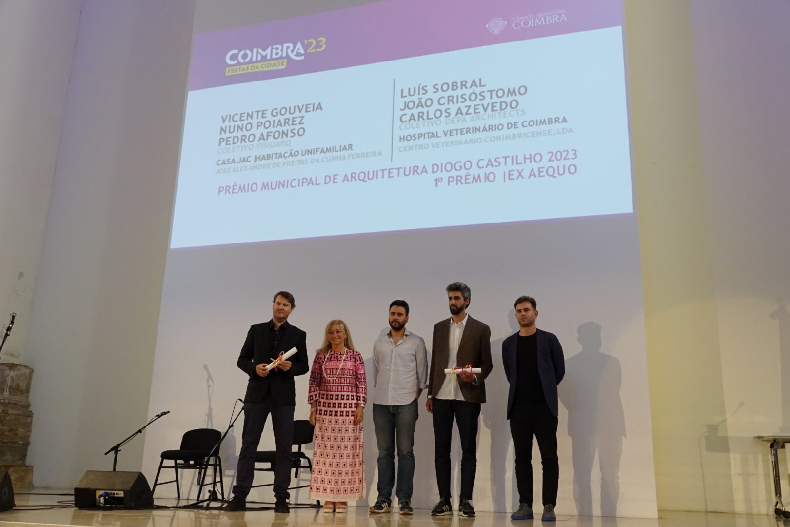 Já o Prémio Municipal de Arquitetura Diogo Castilho foi atribuído ex aequo a Luís Sobral, João Crisóstomo e Carlos Azevedo (do ateliê DEPA), pela obra Hospital Veterinário de Coimbra, e a Vicente Gouveia, Nuno Poiarez e Pedro Afonso, do coletivo VISIOARQ, pela reabilitação e ampliação da “Casa JAC”. A vereadora do Urbanismo da CM de Coimbra, Ana Bastos, fez uma breve resenha dos vários projetos e entregou os prémios.