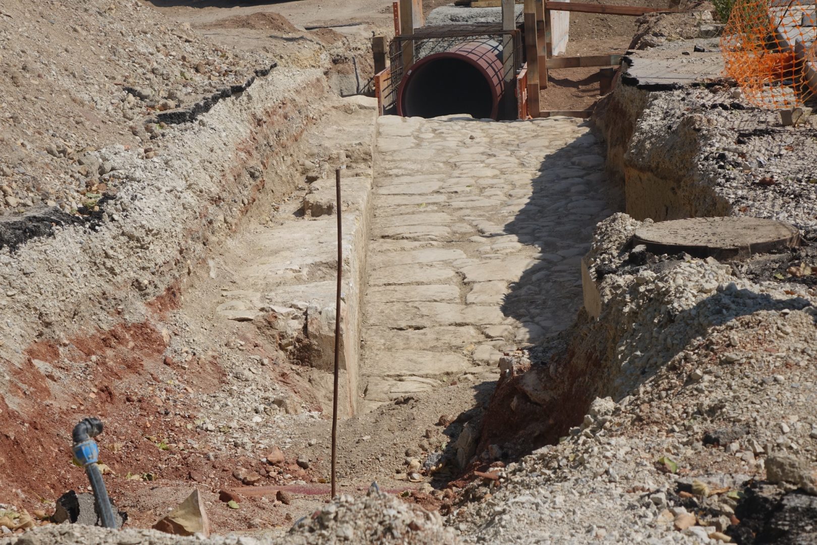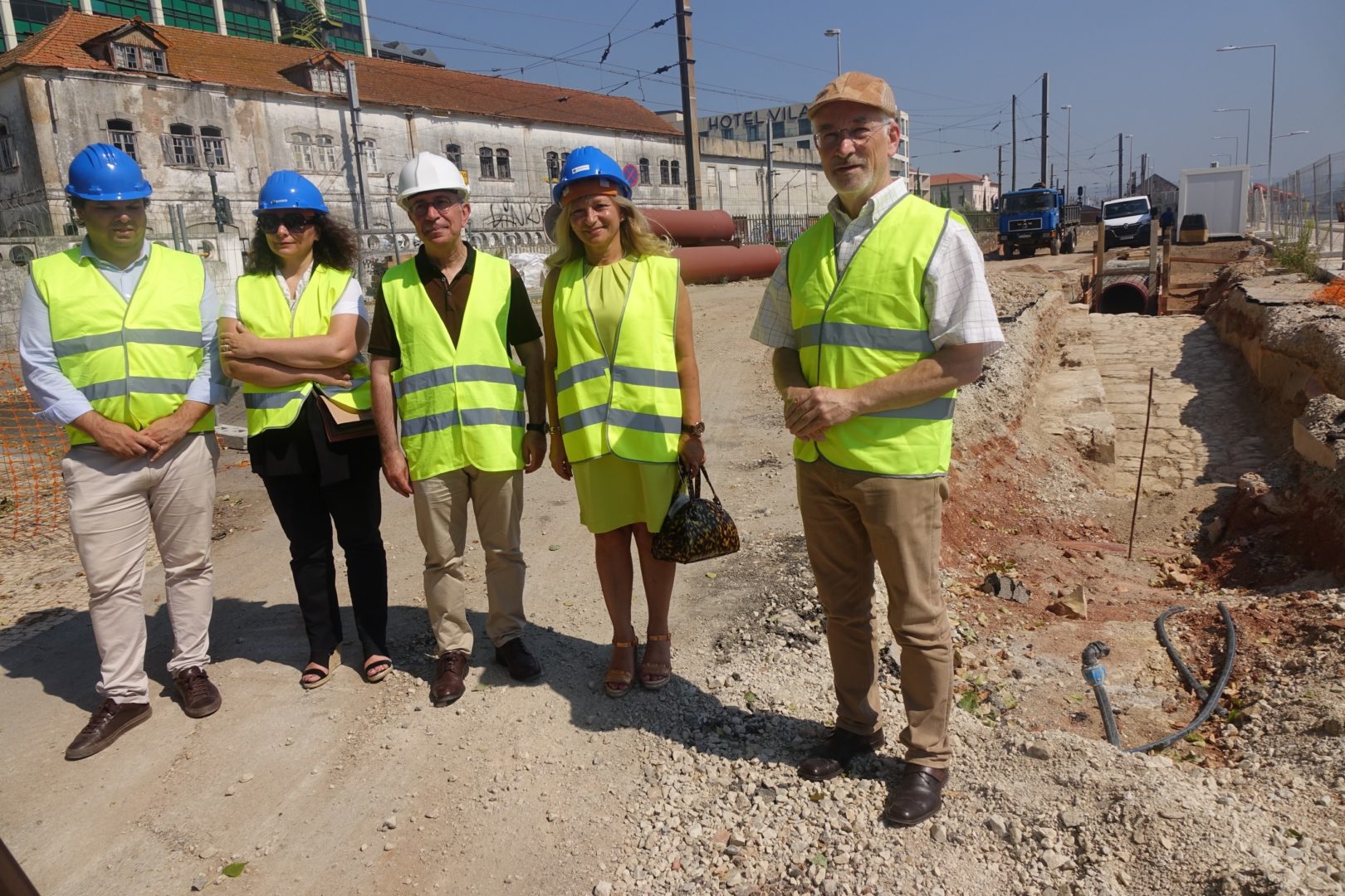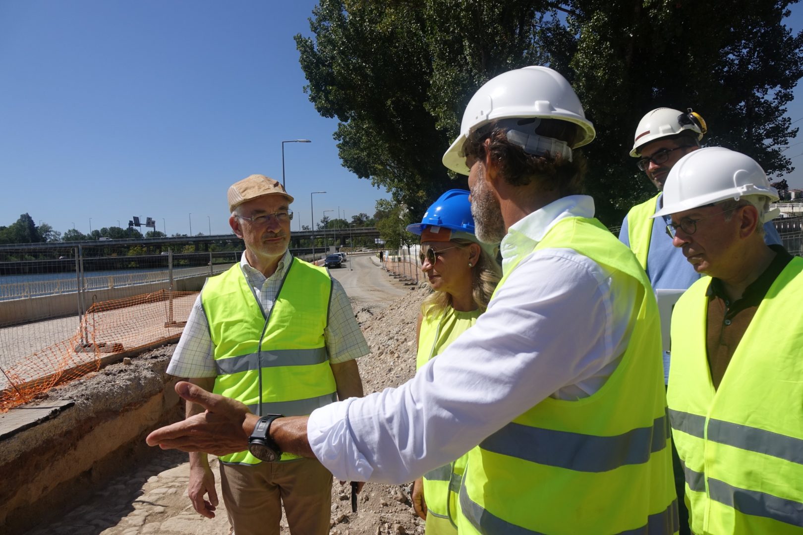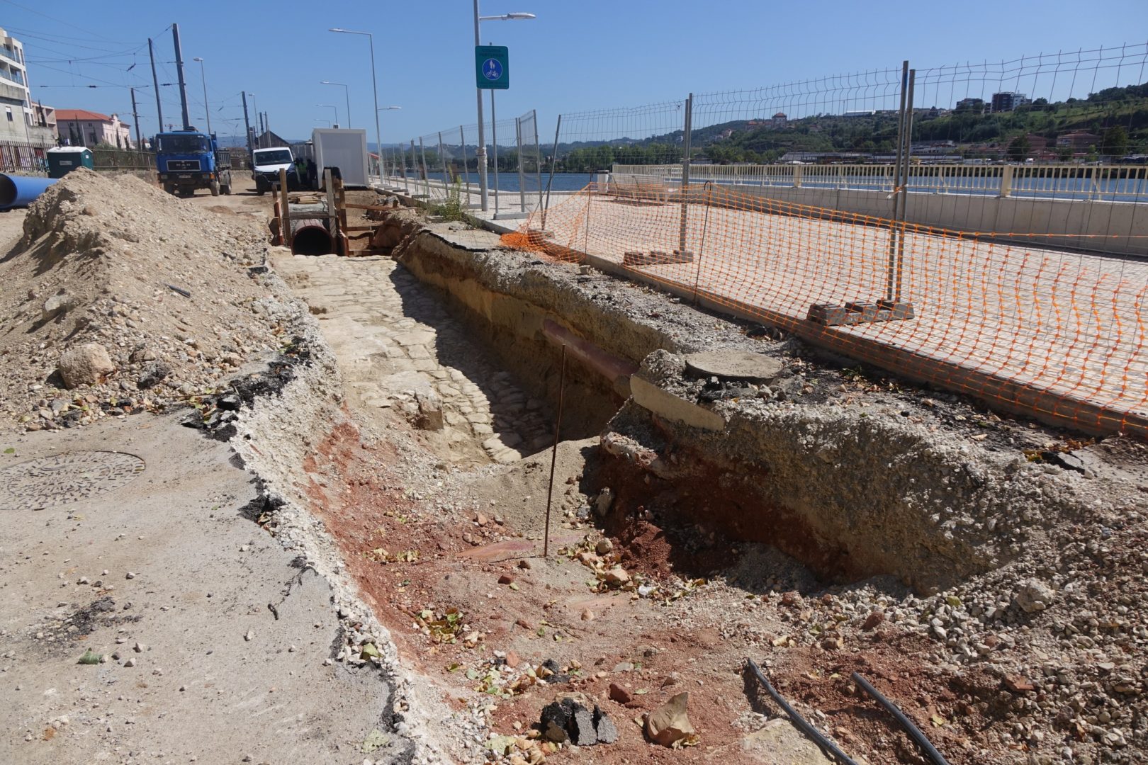 Durante a visita de hoje à Avenida Aeminim, foi possível perceber que, atualmente, a empreitada está parada a aguardar parecer do CNANS, depois de se ter identificado uma estrutura arqueológica na frente de obra que, ao que tudo indica, será o antigo Cais dos Lázaros. Assim que se deparou com este achado, a AdCL comunicou à Direção Regional de Cultura do Centro que, por sua vez, comunicou à Direção Geral do Património Cultural, que passou o processo para o CNANS, que ainda não deu resposta, um mês e meio depois.
