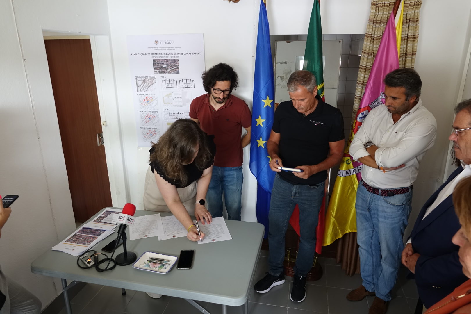 “Este é um momento particularmente feliz” – foi assim que a vereadora da Habitação Social, Ana Cortez Vaz, iniciou a cerimónia de consignação de reabilitação de 33 habitações do Bairro da Fonte do Castanheiro, que decorreu hoje, dia 16 de agosto, no Bairro. A consignação contou também com a presença do presidente da Associação de Moradores, Fernando Coelho, que se mostrou muito sensibilizado por, finalmente, esta obra ir acontecer; e ainda do presidente da Junta de Freguesia de Santo António dos Olivais, Francisco Rodeiro.