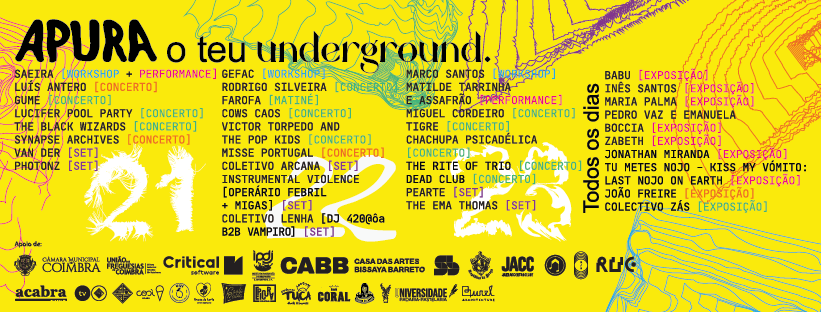 O Festival Apura, projeto de arte e música independente, resulta de uma união de esforços entre artistas, entidades e agentes culturais e sociais da cidade, com o objetivo de valorizar a criação artística local, o reforço do cruzamento e partilha de conhecimento e o fomento da democracia cultural e do acesso livre à cultura, sendo a gratuitidade do evento um valor assumido em todas as edições do evento. Com o mote “Apura o teu underground”, os objetivos da presente edição são o mapeamento e o acolhimento de artistas locais e emergentes, dando-lhes espaço para desenvolver o seu trabalho de criação, incentivando a sua representatividade e fomentando o diálogo e a colaboração entre os diversos artistas e comunidades, de forma inclusiva, com abertura para todos os públicos.