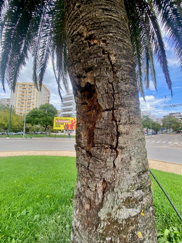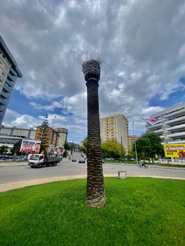 Esta intervenção implica, ainda, a remoção das duas palmeiras da espécie Phoenix canariensis existentes na rotunda das Palmeiras, exemplares esses que apresentam perigosidade, não só pelo ataque do escaravelho vermelho (uma das palmeira já se encontra completamente morta), mas também pela podridão existente na lateral de um dos exemplares, o que a coloca em risco de queda.