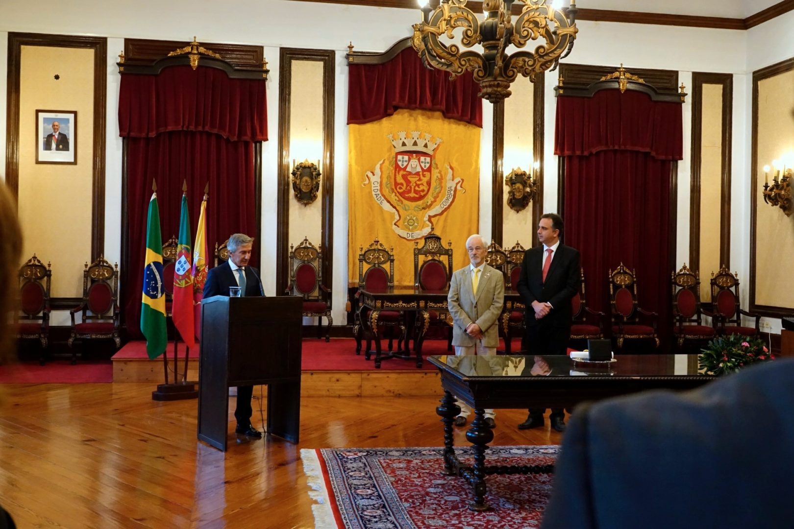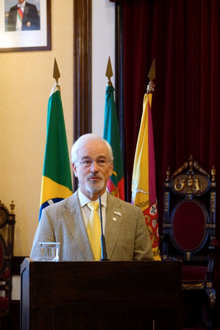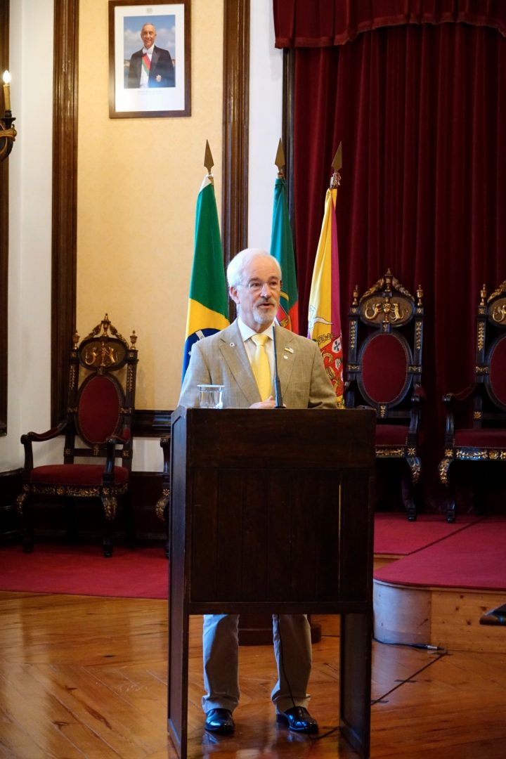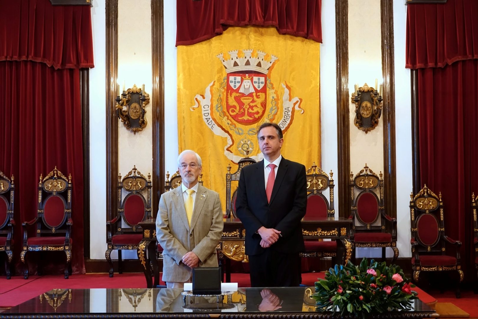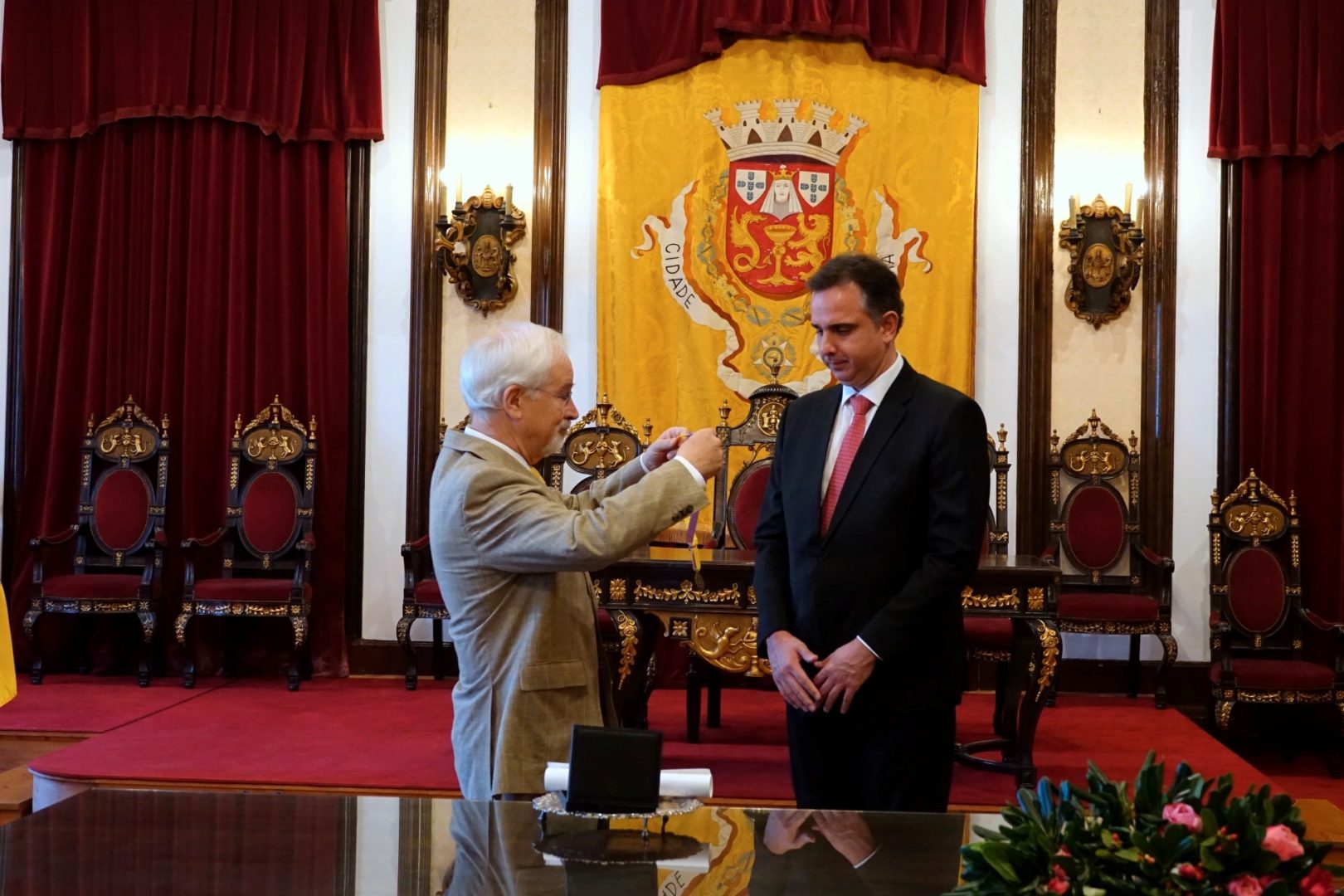 Esta atribuição não é só um ato simbólico, mas é um momento “carregado de grande significado histórico, cultural e de amizade”, referiu José Manuel Silva, acrescentando que se trata de um passo fundamental para esta “permanente aproximação entre os nossos povos falantes da língua portuguesa”. “Este ato solene, mas extraordinariamente significativo e emotivo, de poder outorgar a medalha de ouro da cidade de Coimbra ao senador Rodrigo Pacheco, é mais um passo desta vida comum que temos entre a nossa comunidade de cultura e de língua portuguesa, e dizer ao povo brasileiro que, para além do respeito, nós temos uma relação de amor entre povos”, sustentou o autarca.