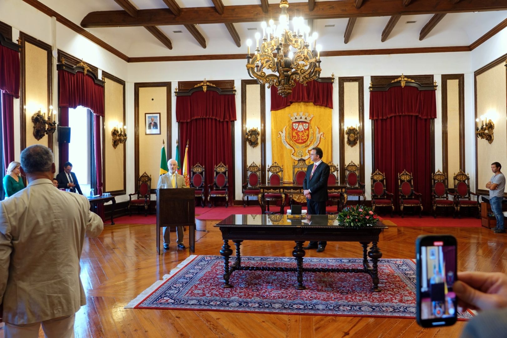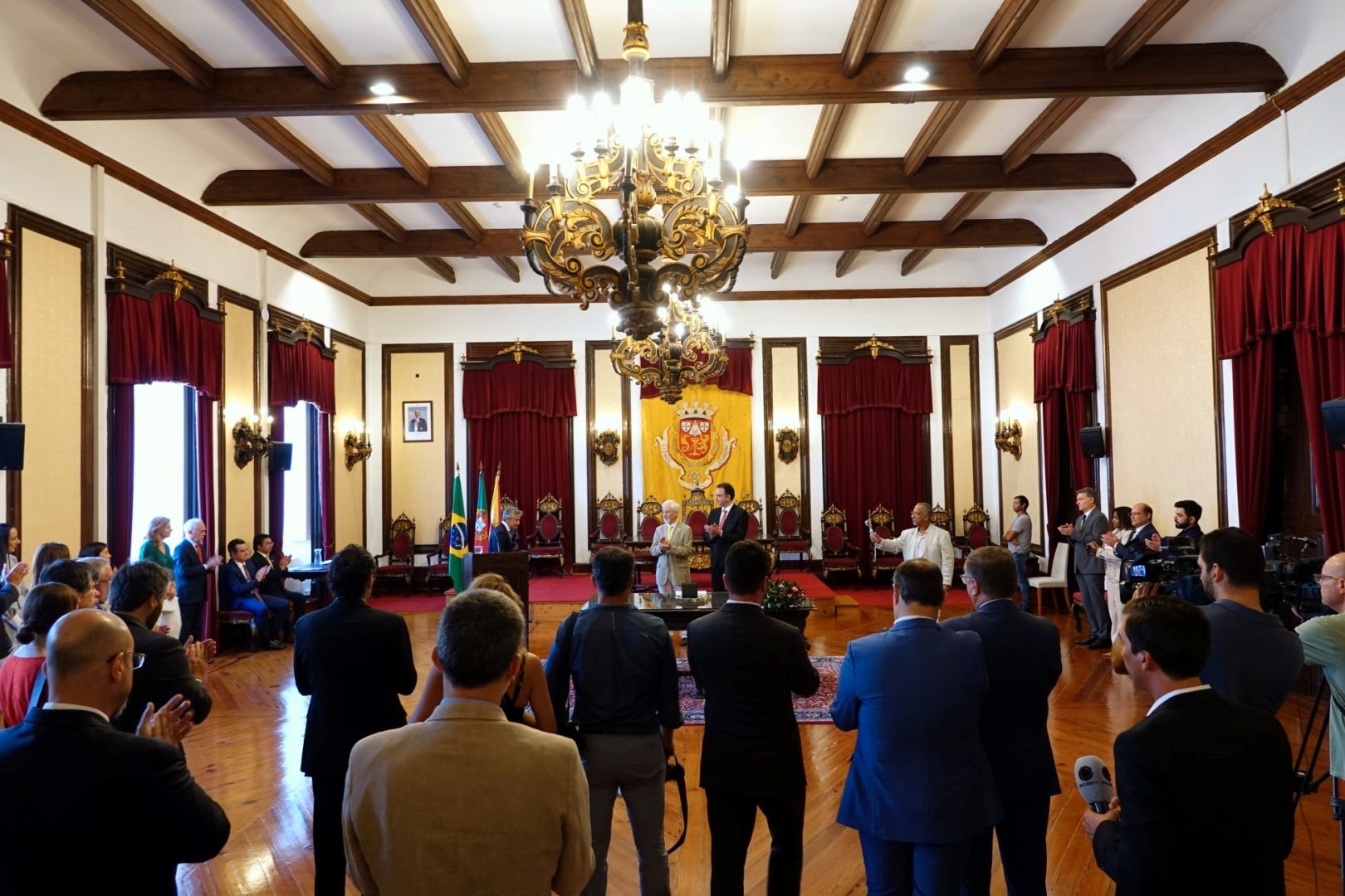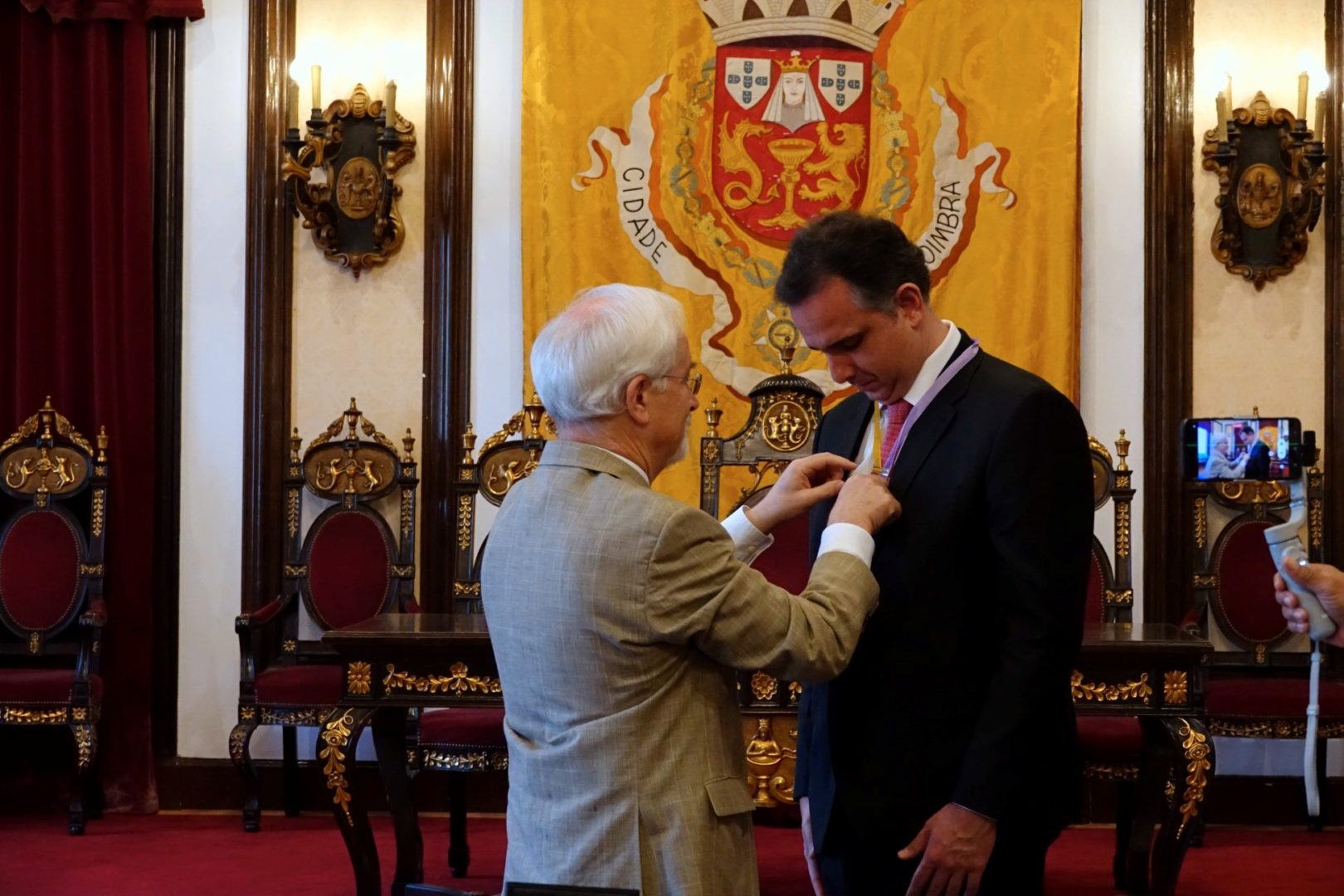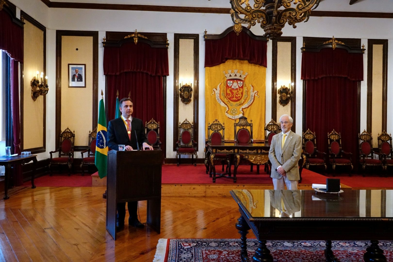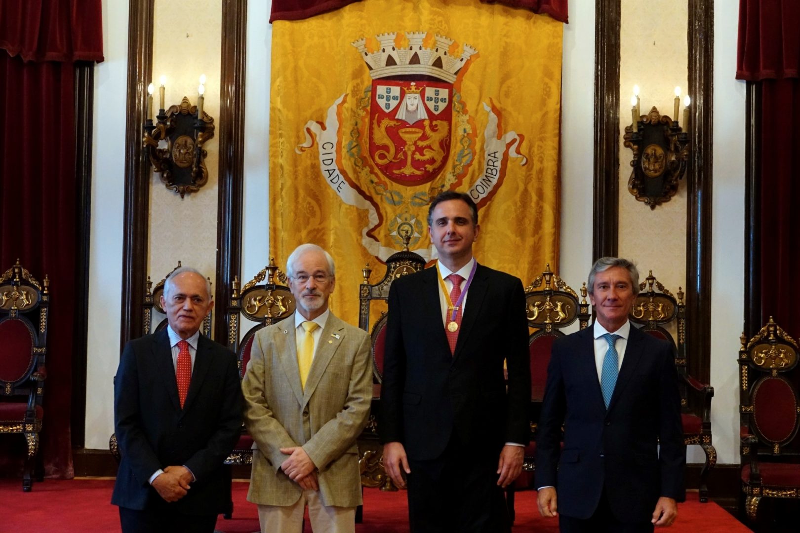 O presidente do Município de Coimbra atribuiu hoje, 12 de outubro, a Medalha da Cidade, Grau Ouro, ao presidente do Senado Federal do Brasil, senador Rodrigo Pacheco, numa sessão solene no Salão Nobre, da Câmara Municipal. “É com grande sentido de honra que posso dar este pequeno contributo para a amizade, para o amor dos povos irmãos falantes da língua portuguesa”, sublinhou José Manuel Silva.