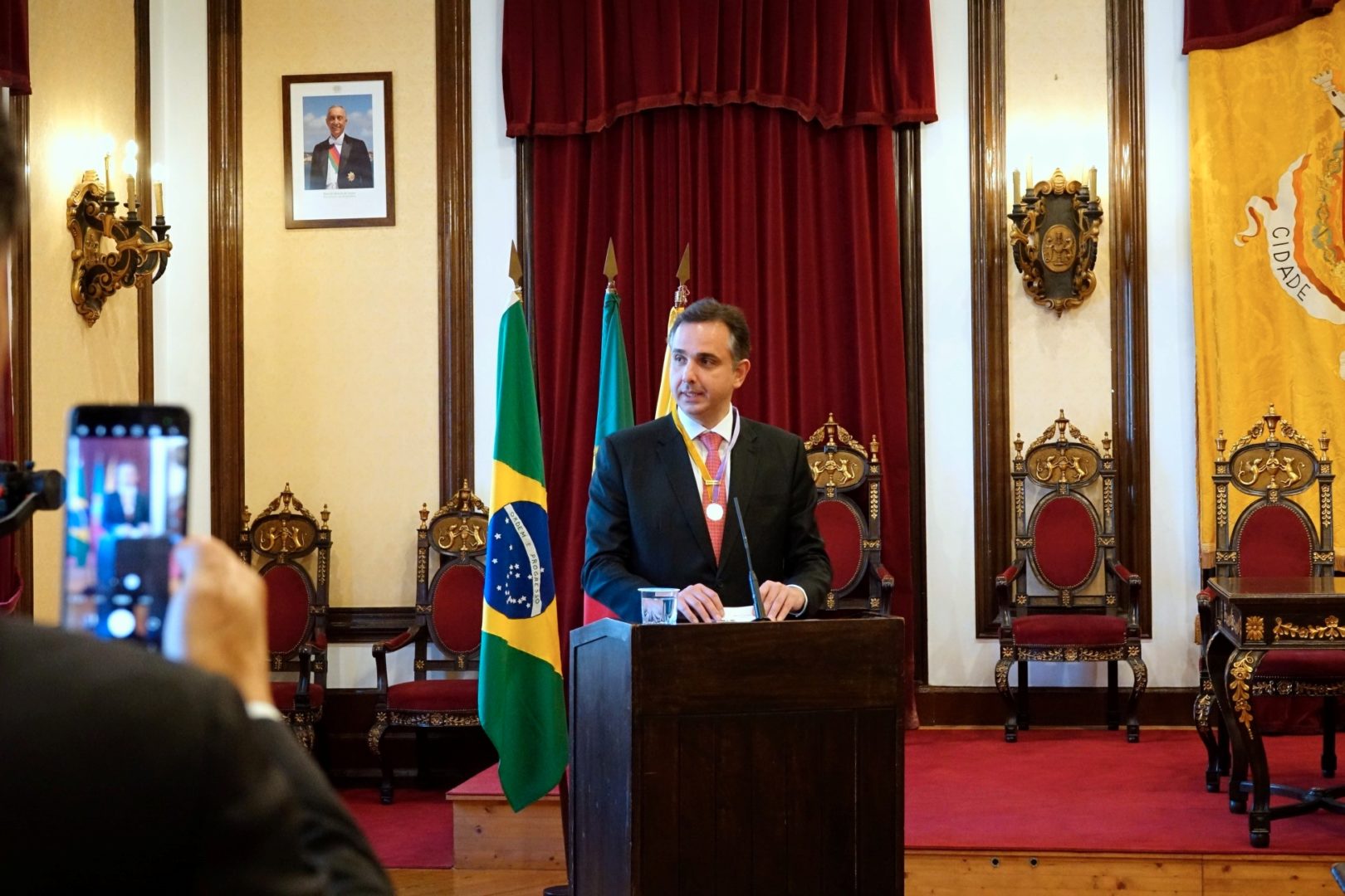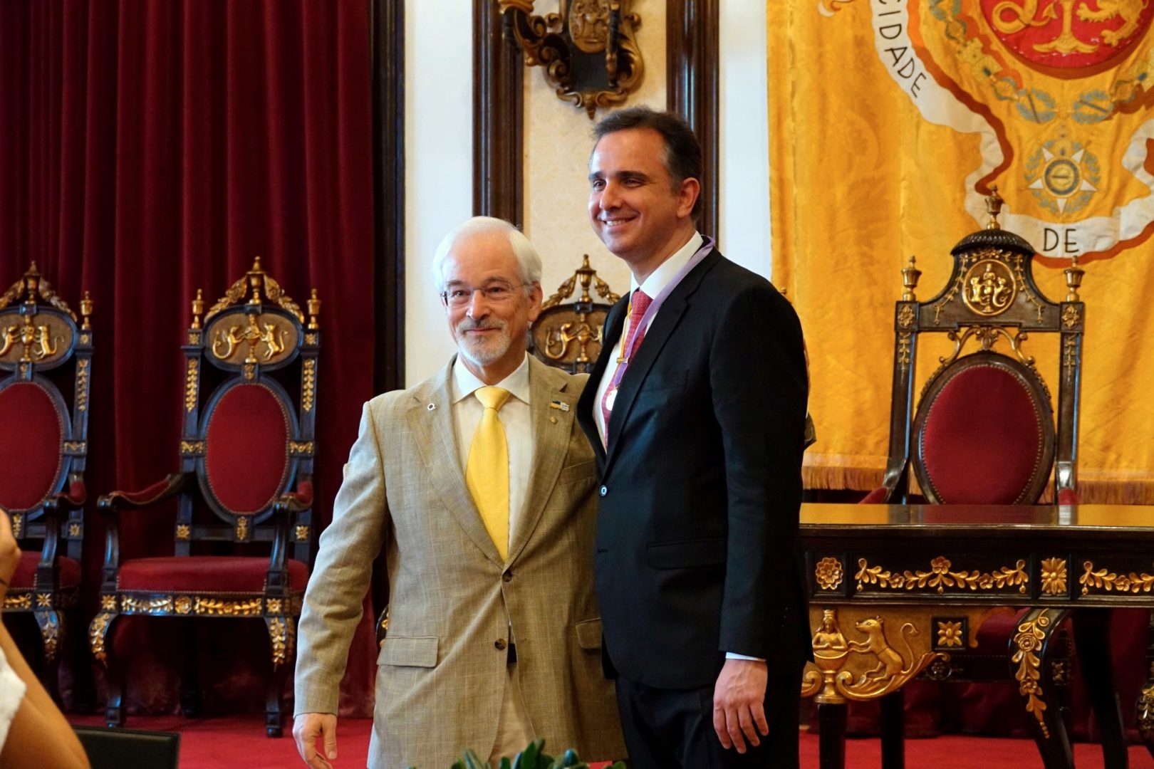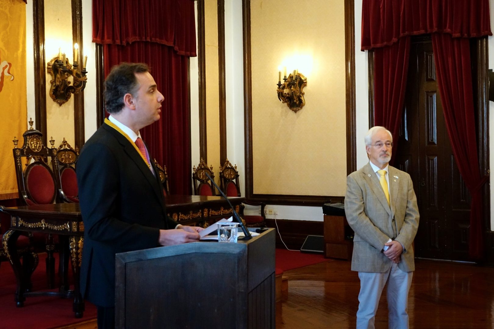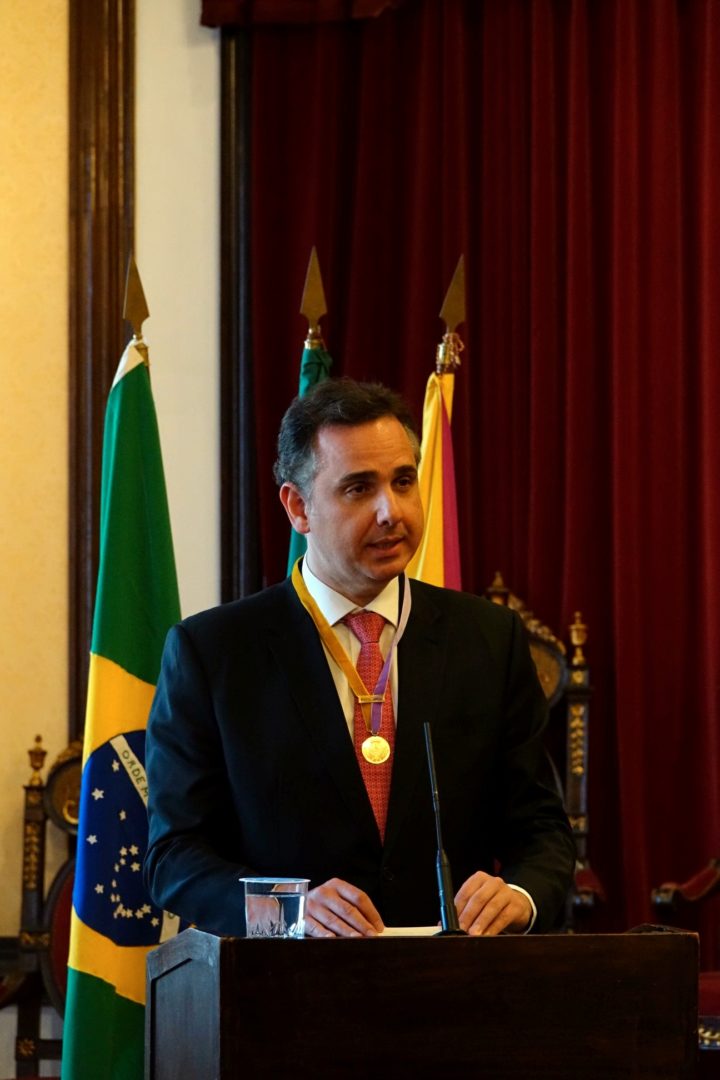 Rodrigo Pacheco recebeu a medalha com o sentimento que ela representa – “a firme relação de proximidade entre Brasil e Portugal” e também “o enorme potencial de alargamento desse vínculo”.