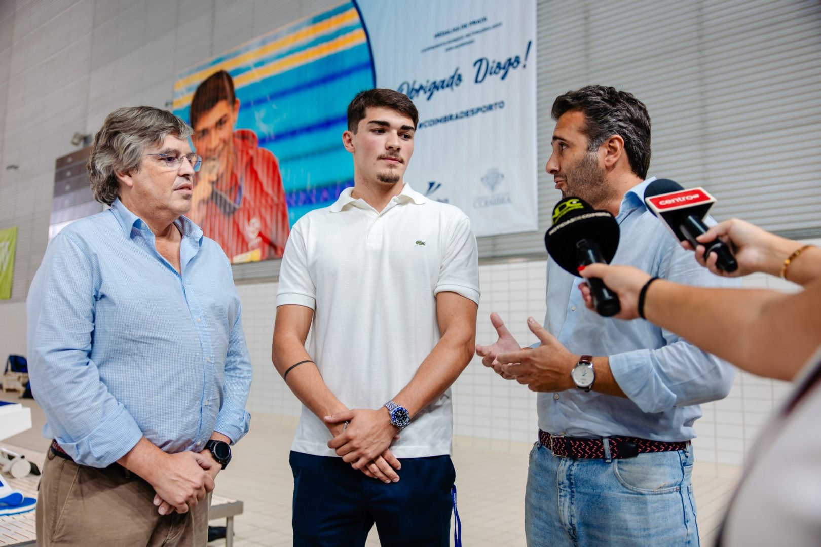 “É uma honra muito grande para Coimbra tê-lo hoje entre nós”, referiu o vereador do Desporto, acrescentando que o objetivo da homenagem é “agradecer o momento histórico que nos proporcionou”. “Teve a felicidade de nascer em Coimbra, a melhor cidade do mundo, e é daqui que têm saídos muitos atletas de alta competição”, lembrou Carlos Matias Lopes. “É com muita emoção e com muito orgulho que a presença do Diogo hoje aqui representa aquilo que pretendemos para o Desporto em Coimbra”, enfatizou o vereador, que destacou ainda como as qualidades do equipamento desportivo municipal – Complexo Desportivo e Centro de Alto Rendimento de Natação – têm contribuído para estes resultados.