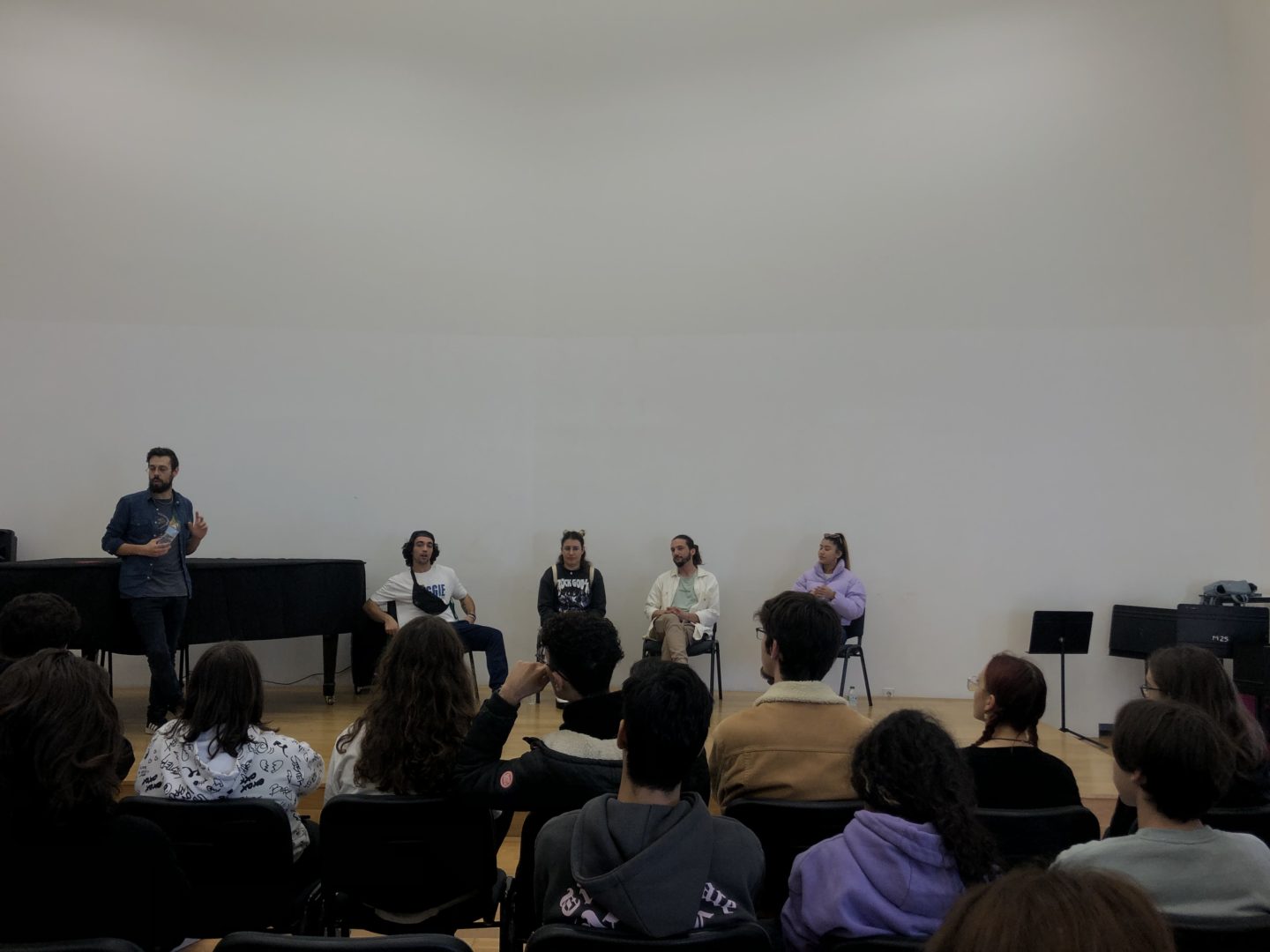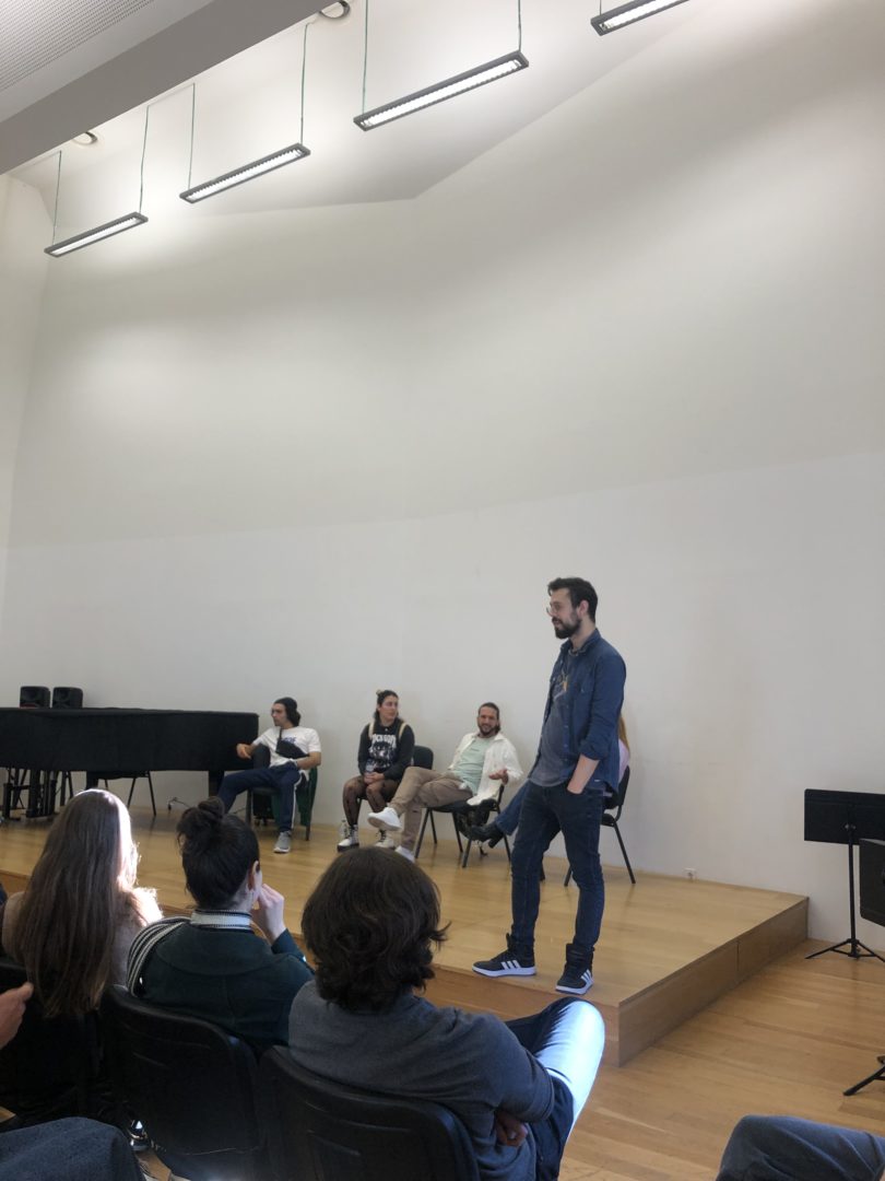 A sessão teve uma duração de 90 minutos e foi dirigida aos alunos dos 10.º e 11.º anos do Curso Profissional Instrumentista de Jazz da Escola Artística do Conservatório de Música de Coimbra. Através da expressão artística, cada participante foi convidado a construir uma narrativa, desconstruindo a realidade.