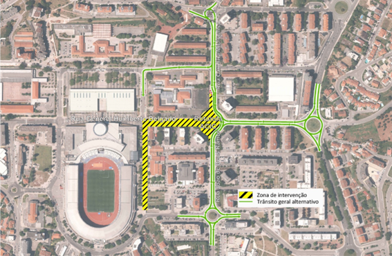 A implementação deste condicionamento visa a realização de trabalhos na zona de rotunda que permitirão, na próxima fase, a reabertura da rotunda, ainda que de forma provisória, restabelecendo o acesso à Rua General Humberto Delgado, em direção às escolas e centro comercial.