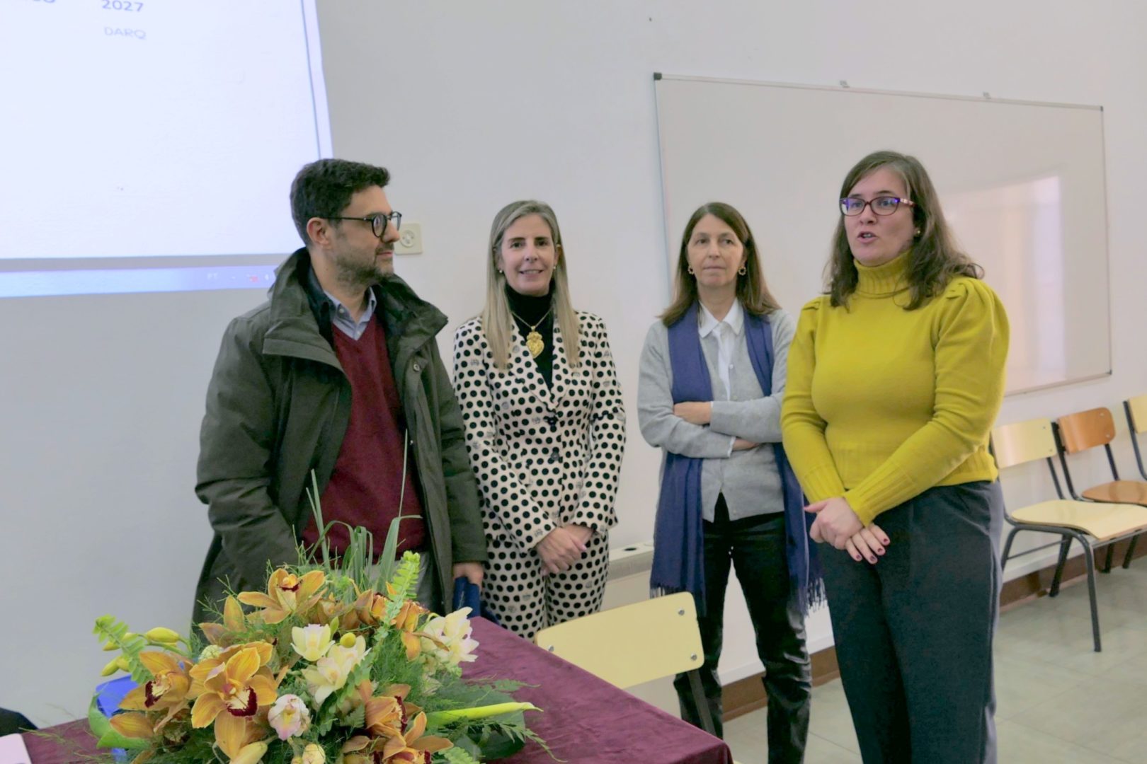 A abertura do seminário contou com a presença da vereadora da Educação, Ana Cortez Vaz, da diretora da Escola Secundária José Falcão, Isabel Amoroso Lopes, do diretor do Departamento de Arquitetura (DARq) da uUiversidade de Coimbra, Luís Correia, e com a representante da Direção-geral dos Estabelecimentos Escolares (DGEstE), Paula Almeida.