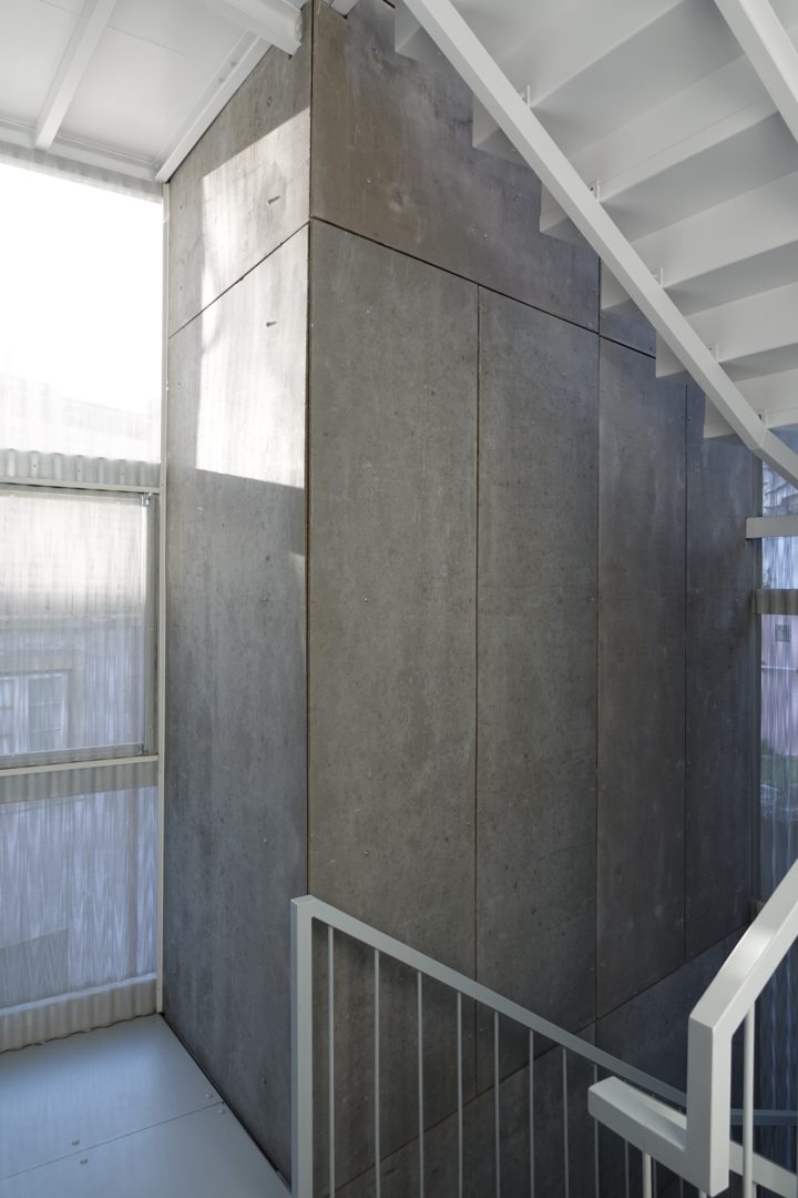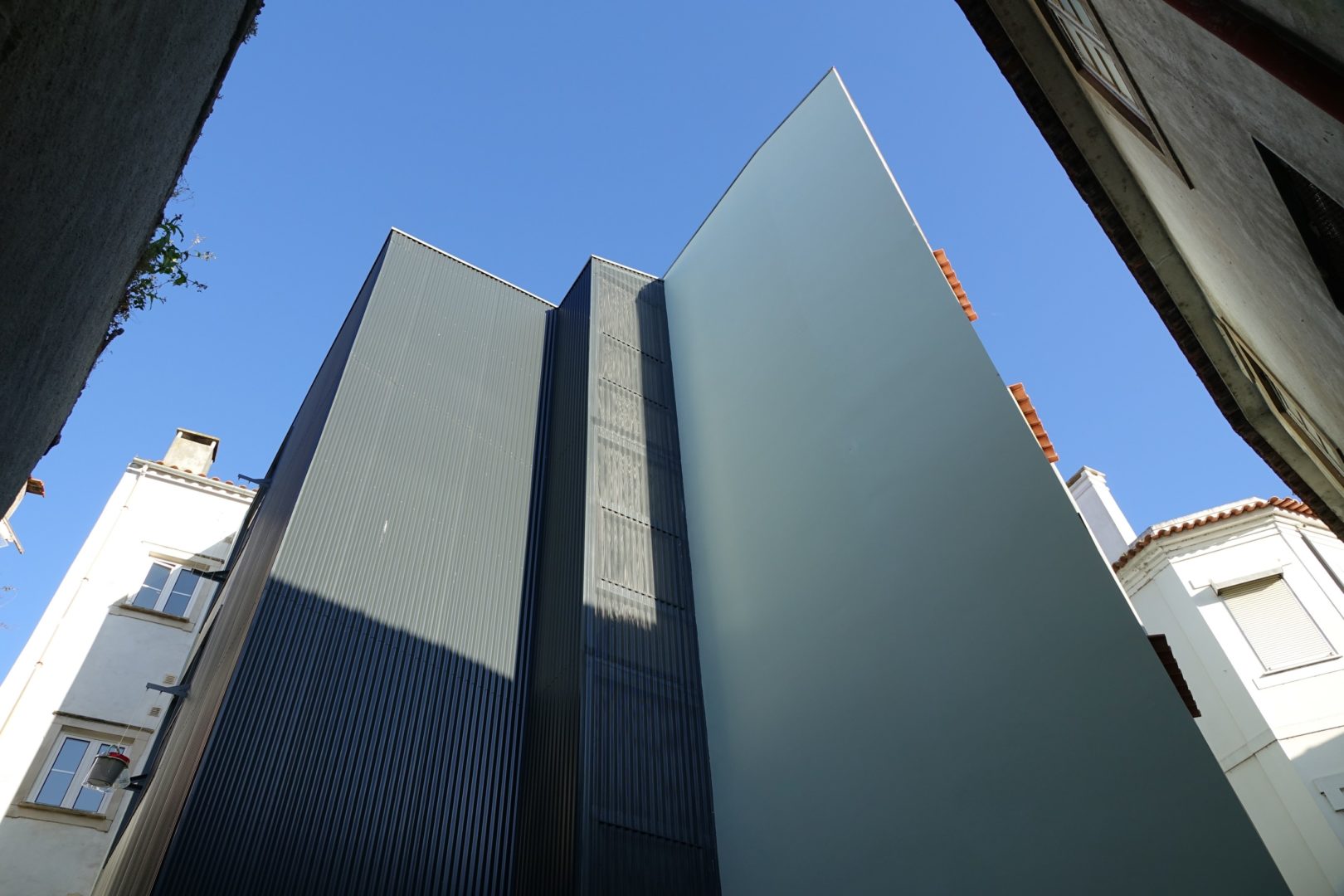 Nas traseiras foi construído um novo corpo que alberga o acesso vertical às habitações e às cozinhas. A nova caixa de escadas, com planta em “U”, é acessível a partir do Beco dos Esteireiros e implanta-se perpendicularmente à construção primária. É a partir desta que se acede às quatro habitações independentes, uma por piso.