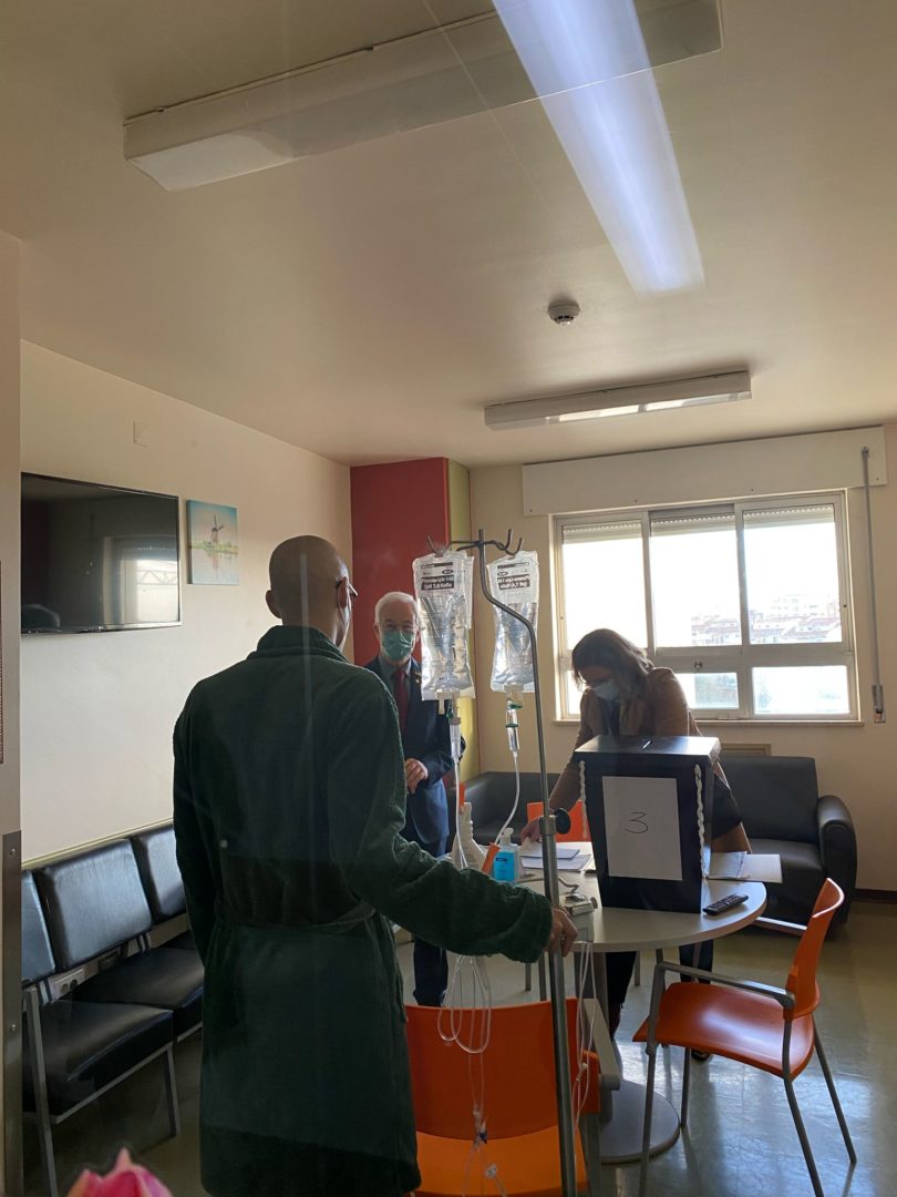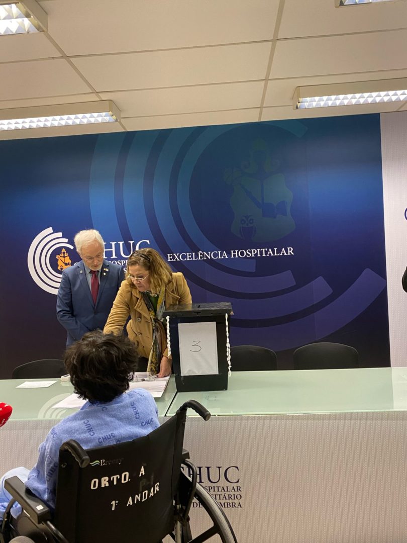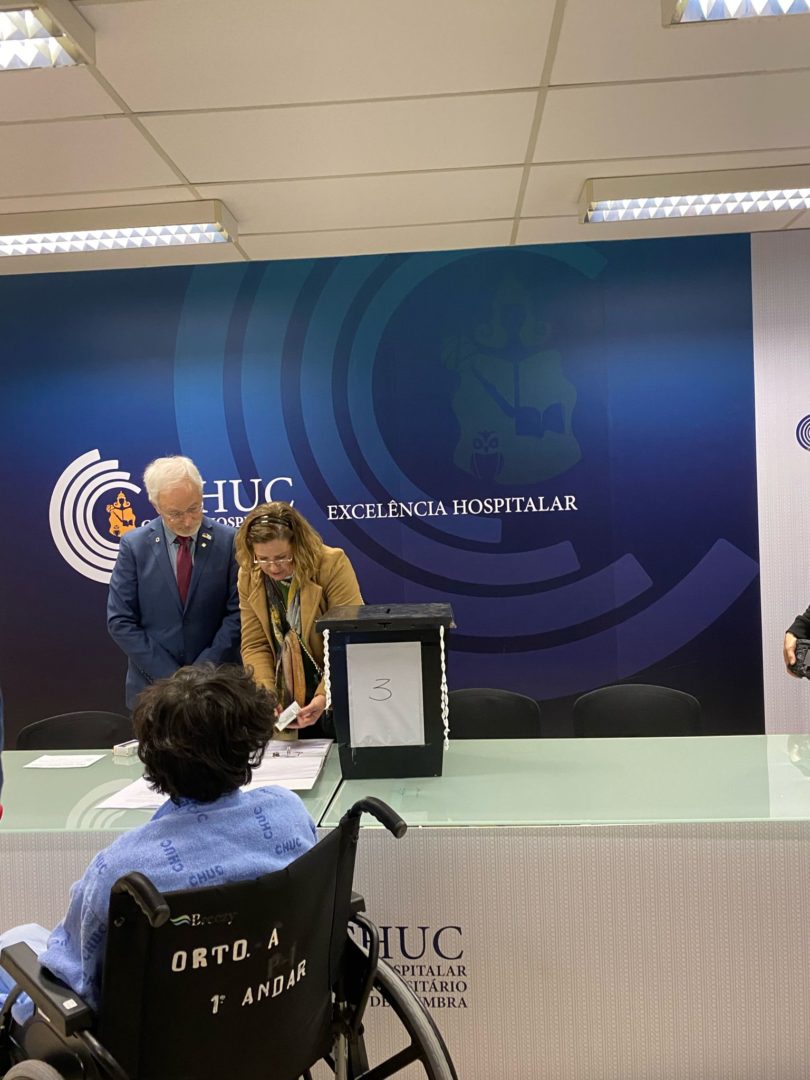 O estudante universitário Pedro Miguel Santos, de 20 anos, foi o primeiro doente dos Hospitais da Universidade de Coimbra (HUC) a exercer o direito de voto antecipado na Unidade Local de Saúde de Coimbra, num processo acompanhado ontem, dia 26 de fevereiro, pelo presidente do Município de Coimbra, José Manuel Silva. Entre os dias 26 e 29 de fevereiro, está a decorrer esta operação de voto antecipado, também no Estabelecimento Prisional de Coimbra, no Centro Educativo dos Olivais, no Hospital Sobral Cid e no Hospital dos Covões, contando com cerca de 250 inscritos, sendo coordenada pela Câmara Municipal (CM) de Coimbra, através de uma equipa especial de apoio às Eleições Legislativas de 10 de março.