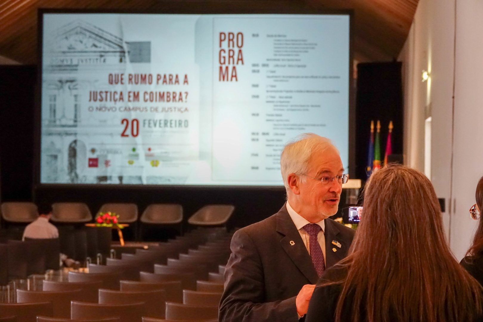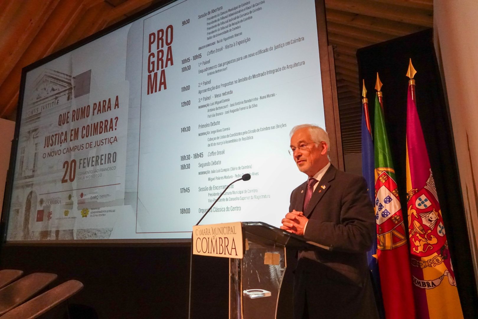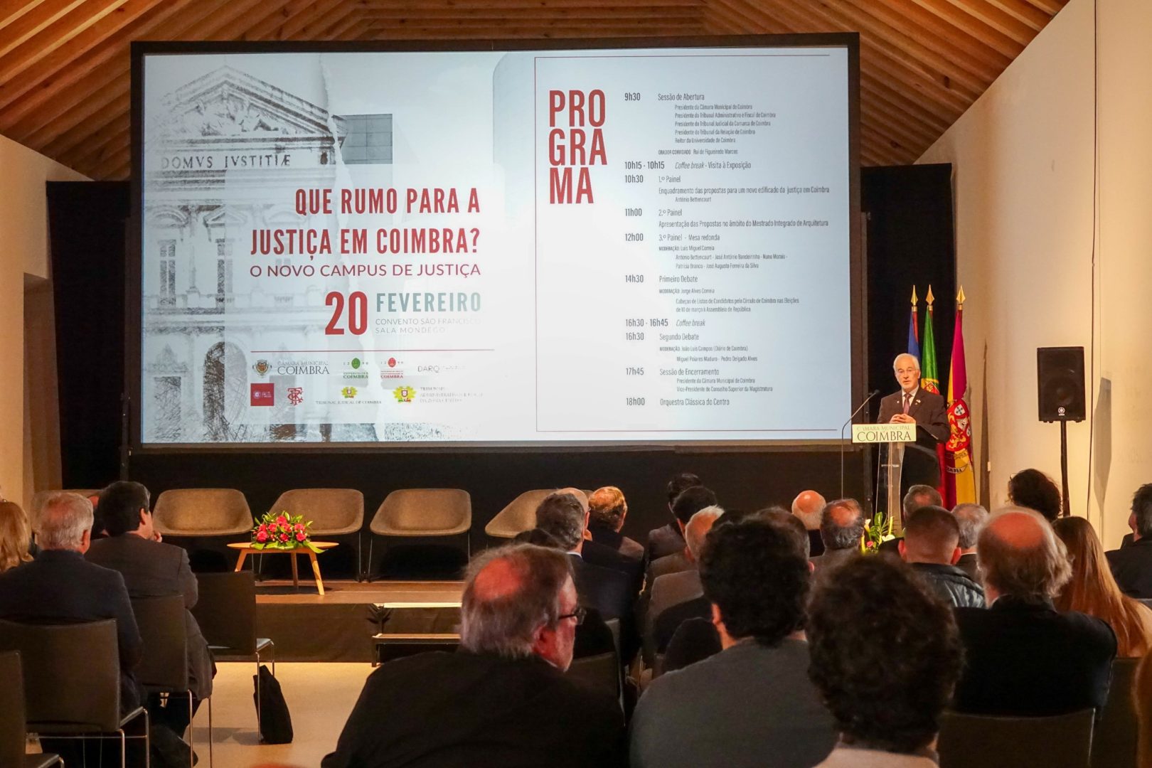 “Que rumo para a Justiça em Coimbra? – O novo Campus da Justiça” foi o mote para o debate ao longo do dia de hoje, 20 de fevereiro, na Sala Mondego do Convento São Francisco, numa organização da CM de Coimbra, da Universidade de Coimbra – através da Faculdade de Direito e Departamento de Arquitetura da Faculdade de Ciências e Tecnologia –, do Tribunal Judicial da Comarca de Coimbra e do Tribunal Administrativo, com o objetivo de analisar o futuro do Palácio da Justiça de Coimbra. O evento foi dividido em dois momentos: de manhã discutiram-se as soluções técnicas e arquitetónicas para Novo Complexo Judicial para Coimbra e durante a tarde está a decorrer um amplo debate democrático, com a participação dos candidatos por Coimbra às eleições legislativas de março.