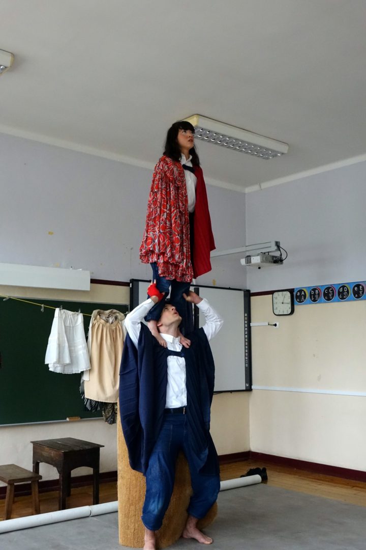 Em “Exercícios de Ser Criança e Outros Aprendimentos”, o corpo é o ponto de partida para a criação de espaços e personagens, progredindo conforme os seus elementos e ações, que transcendem para o poético e entram em contato com o eu, convidando todos a deixar-se levar da forma mais genuína possível pelas aventuras propostas. O processo criativo constituiu em desafiar os limites do real e do imaginário, desafiando as conceções comuns do valioso, belo e útil.
