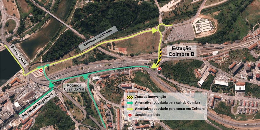Durante cerca de 4 meses não será possível a saída da cidade pelo túnel de Coimbra B, sendo a alternativa de trânsito exemplificada na imagem abaixo: