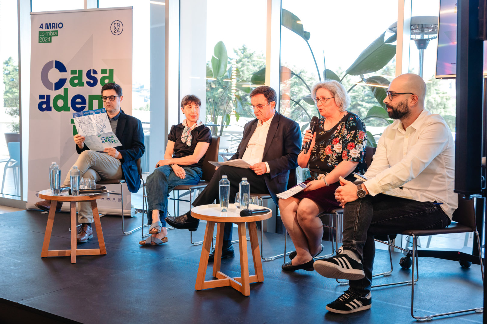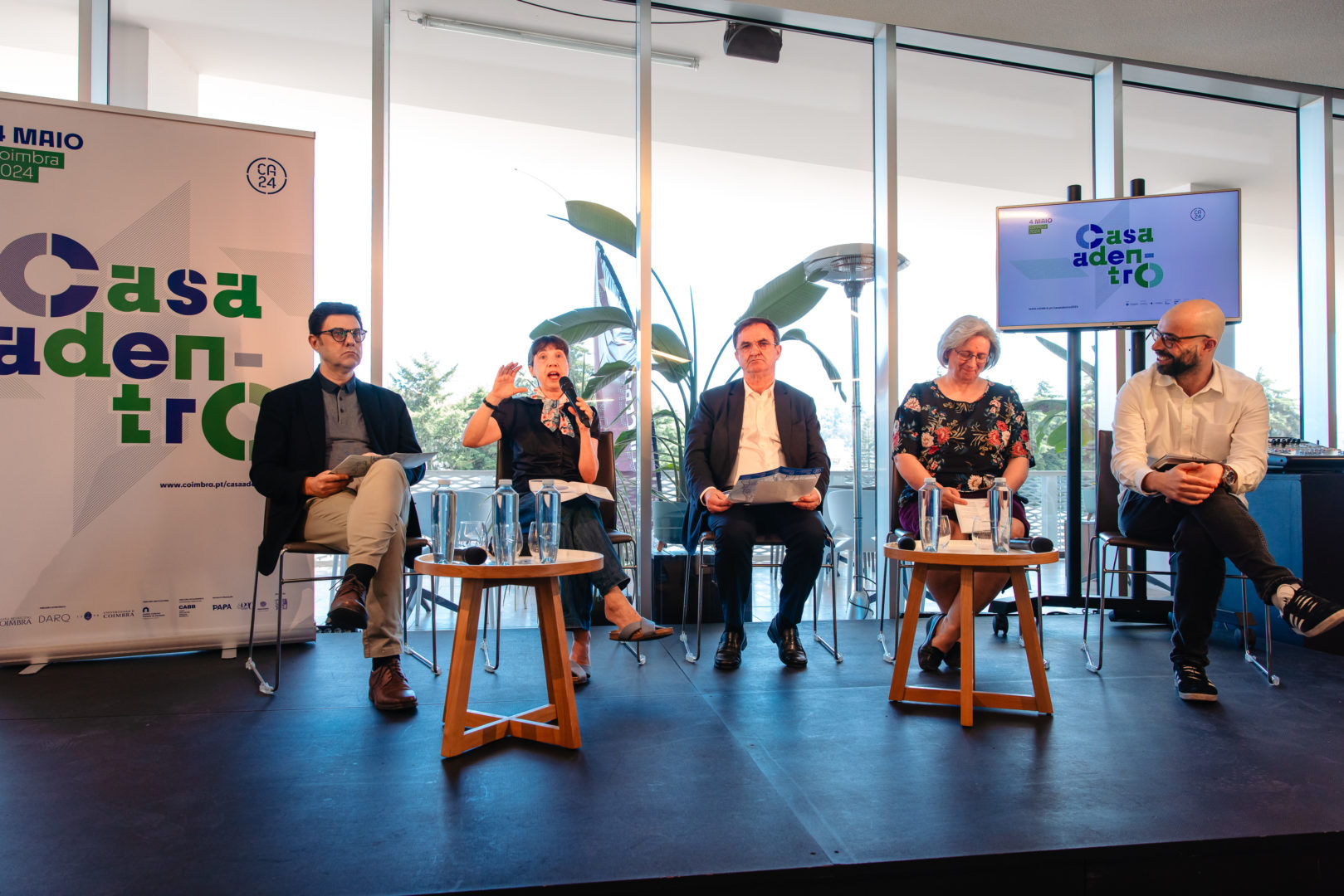 A segunda edição de Casa Adentro 2024, que terá lugar no dia 4 de maio, foi hoje, dia 17 de abril, apresentada em conferência de imprensa, no Café Concerto do Convento São Francisco, pelo vice-presidente da CM de Coimbra, Francisco Veiga, pelo chefe da Divisão de Cultura, Rafael Nascimento, pelo presidente da Direção do DARQ da FCTUC, Luís Miguel Correia, pela diretora do CCPS, Cristina Faria, e ainda pela coordenadora do projeto, Margarida Mendes Silva.