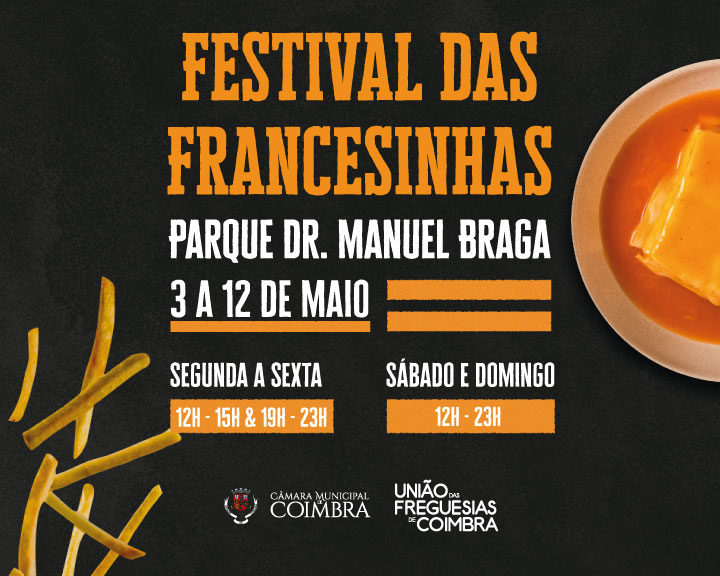 A 3º edição do Festival das Francesinhas vai decorrer no Parque Manuel Braga, de sexta-feira, dia 3, até 12 de maio, de segunda a sexta-feira, das 12h00 às 15h00 e das 19h00 às 23h00, e aos sábados e domingos, das 12h00 às 23h00.
