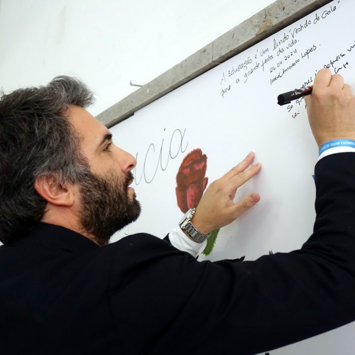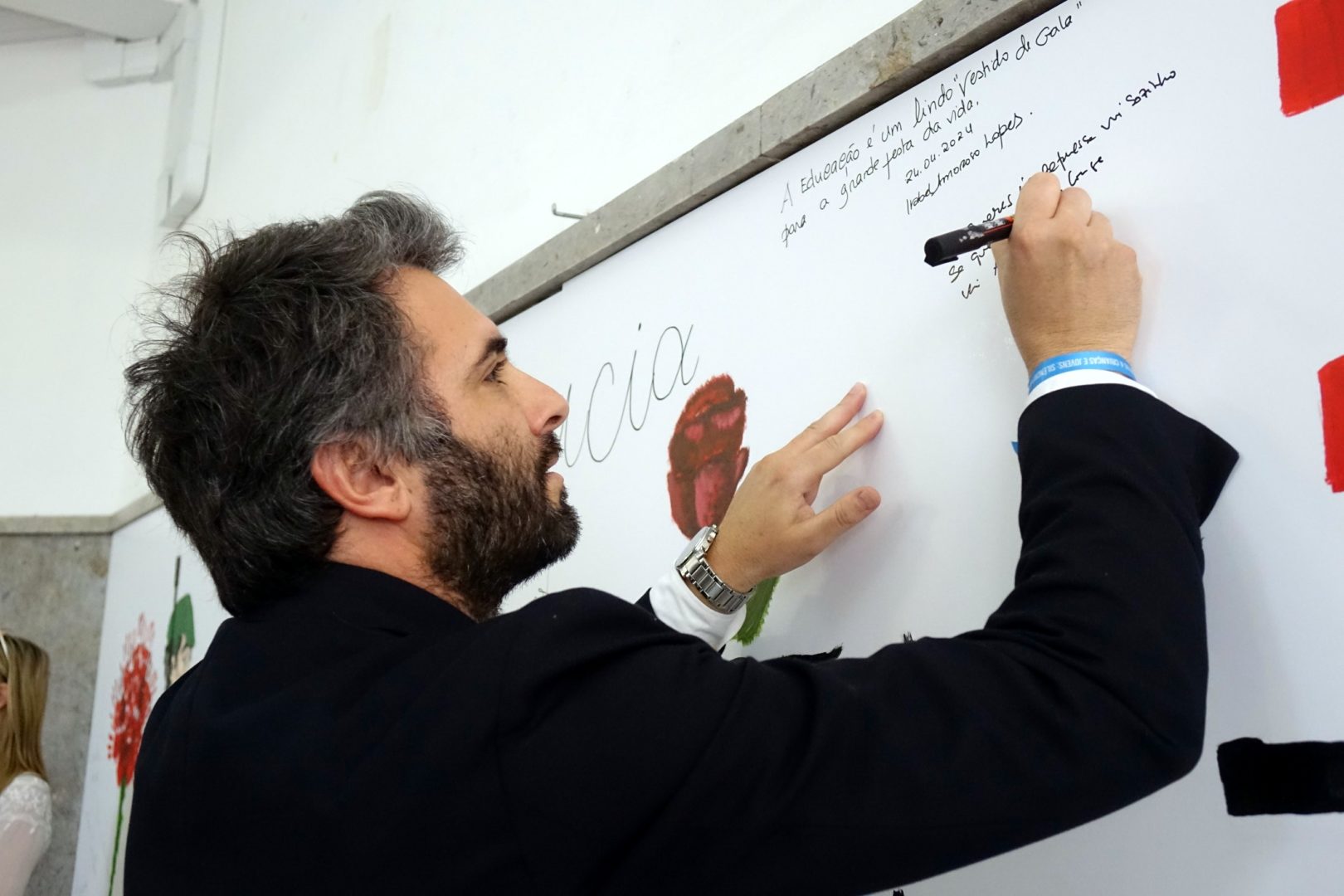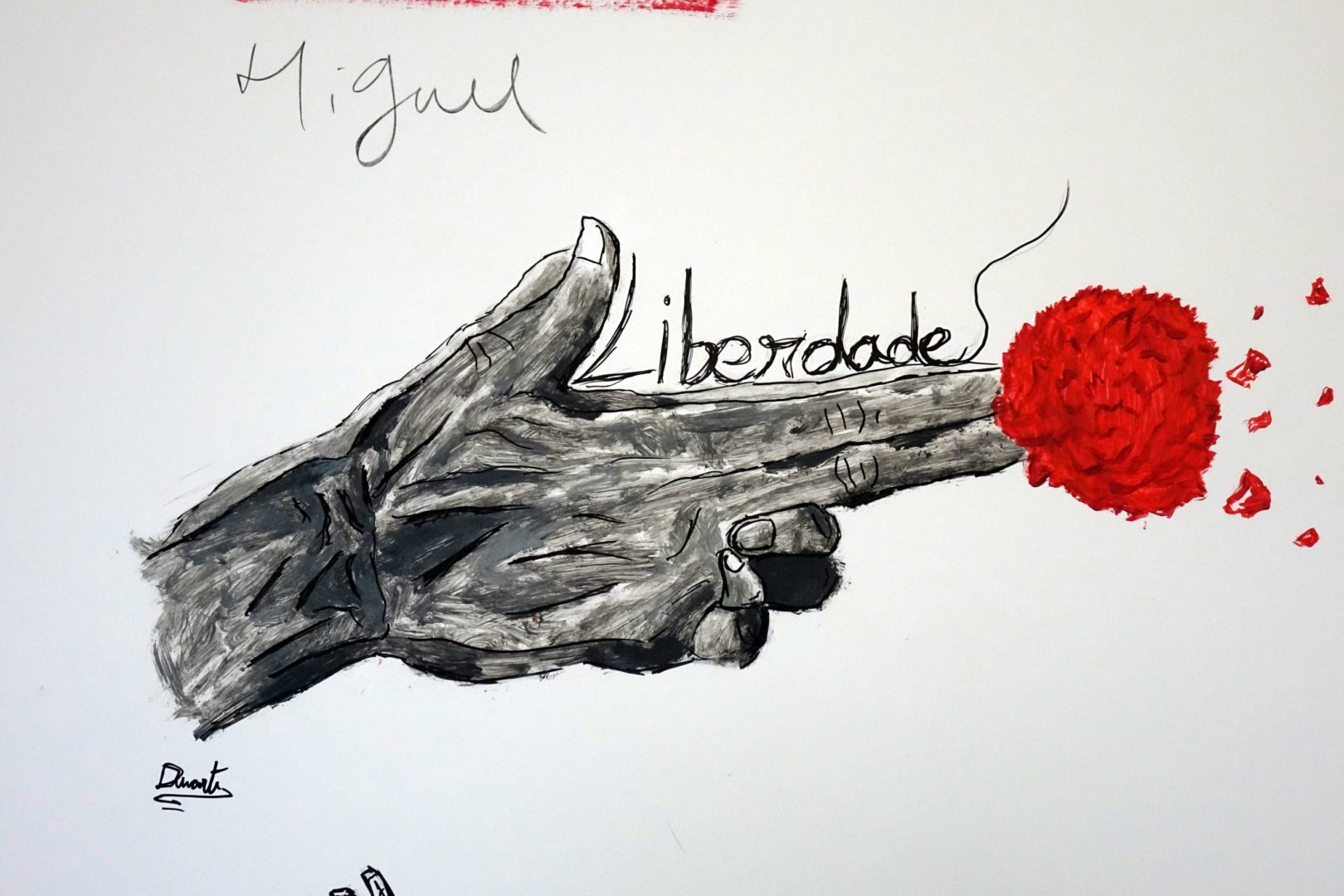 Esta ação vai prolongar-se até ao dia 30 deste mês, período durante o qual cada um pode, livremente, participar neste mural expressivo e artístico, instalado temporariamente no interior da escola. Hoje, foi, precisamente, o que fizeram os Carlos Matias Lopes, Zita Seabra, Carlos Antunes, Clara Almeida Santos e Pedro Monteiro, que participam, depois, numa mesa-redonda sobre o tema Liberdade.