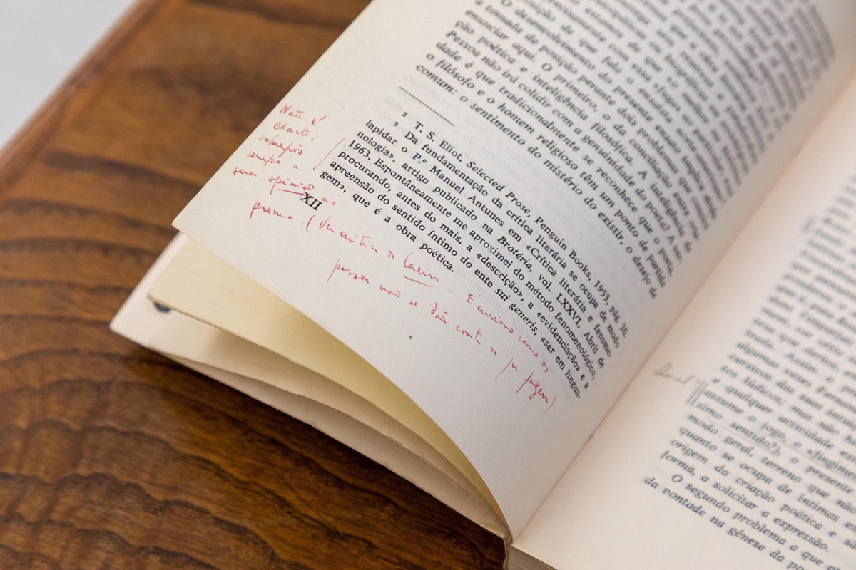 A exposição “Eduardo PESSOA Lourenço” tem dois objetivos principais: por um lado, dar a conhecer a biblioteca pessoana de Eduardo Lourenço; por outro, dar a ver a partir das suas práticas de leitura, tal como se podem inferir das marcas e sinais nos próprios livros, a natureza decisiva do seu encontro com Pessoa. O olhar poliédrico que propomos sobre a leitura de Pessoa encontra-se dividido em oito facetas: “Pessoana ativa”, “Pessoana passiva”, “fazer biblioteca/dar a ler”, “ler ou desistir de ler”, “regressar ao livro”, “uma vida dentro do livro”, “usar livros e bibliotecas” e “usar a BGUC”. A exposição permite ainda imaginar perguntas mais vastas: como dialoga a produção pessoana de Eduardo Lourenço com as suas leituras? Como se relacionam as referências explícitas com as referências implícitas nessa produção? Como lê um escritor? Como lê heteronimicamente? Com a exposição “Eduardo PESSOA Lourenço”, a BGUC associa-se às comemorações do centenário do nascimento de Eduardo Lourenço.