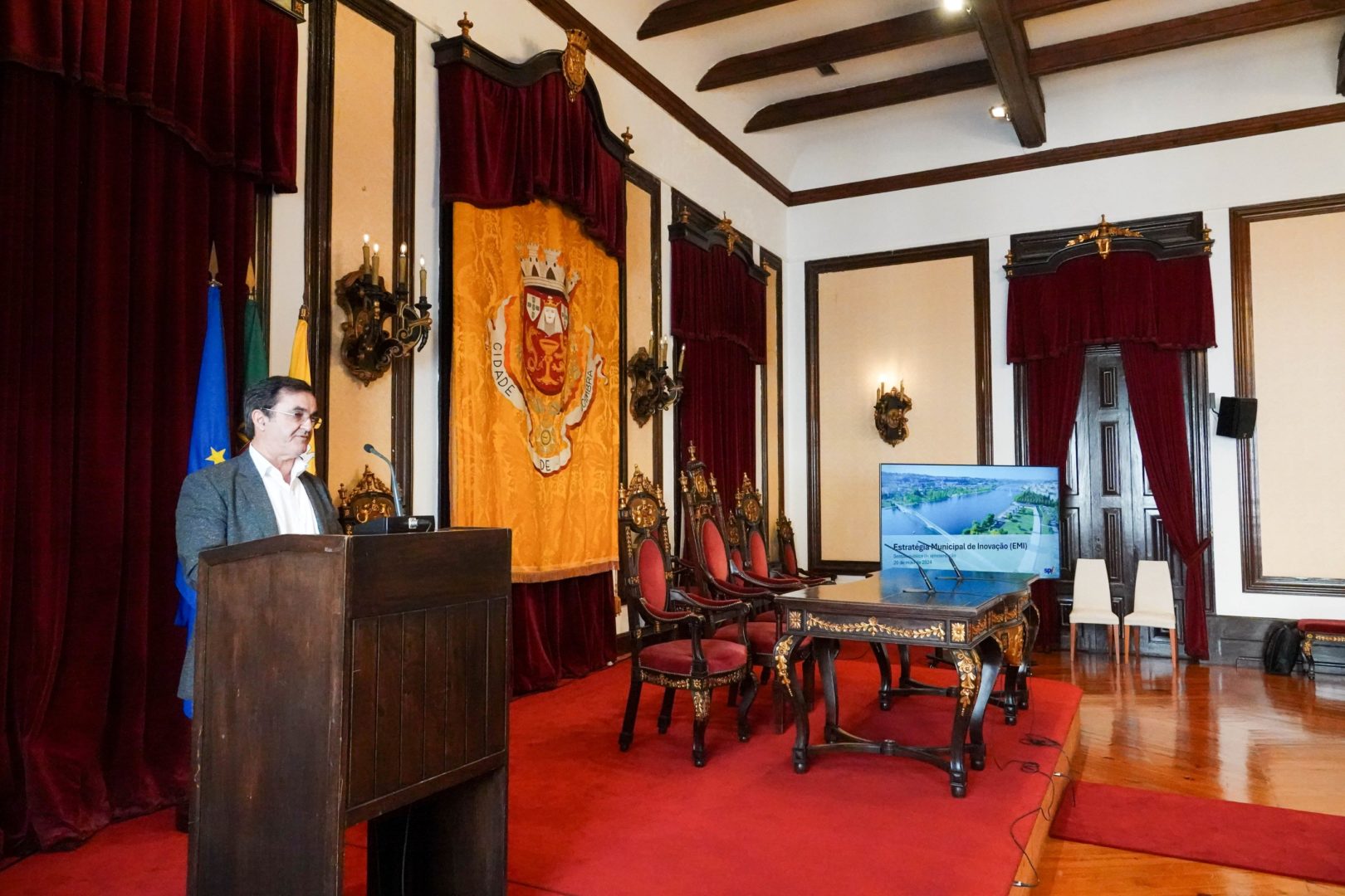 A EMI foi esta manhã apresentada no Salão Nobre dos Paços do Concelho, numa sessão que contou com a participação do presidente da Câmara Municipal, José Manuel Silva, do vice-presidente, Francisco Veiga, do diretor do Departamento de Tecnologias de Informação e Inovação Digital, Nuno Pimenta, e da consultora SPI, representada por Susana Loureiro. “Está tudo aqui em Coimbra. Temos as pessoas, temos as instituições, temos a vontade. Vamos trabalhar para definir as linhas e os caminhos para colocar Coimbra no lugar certo”, afirmou o presidente da Câmara.