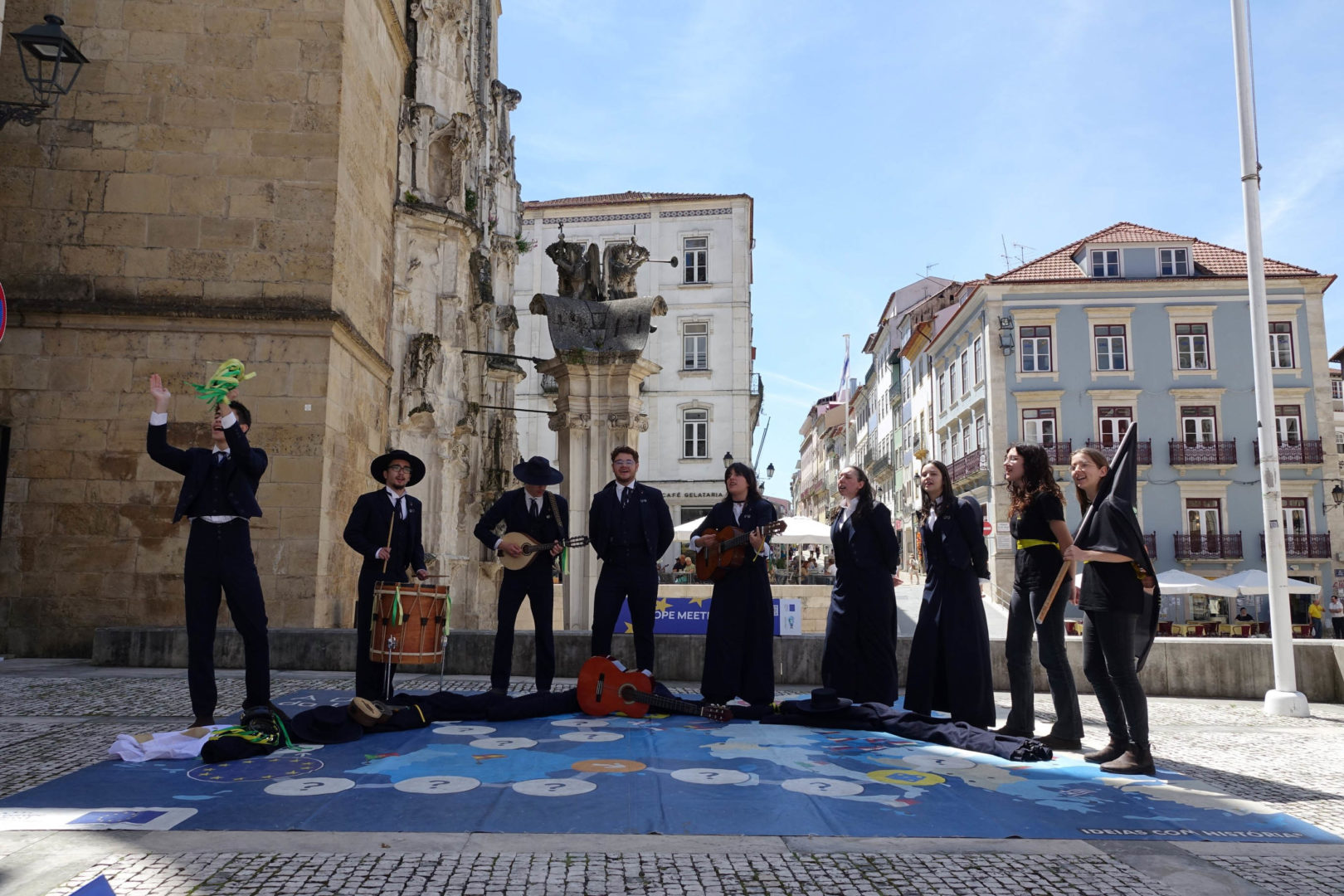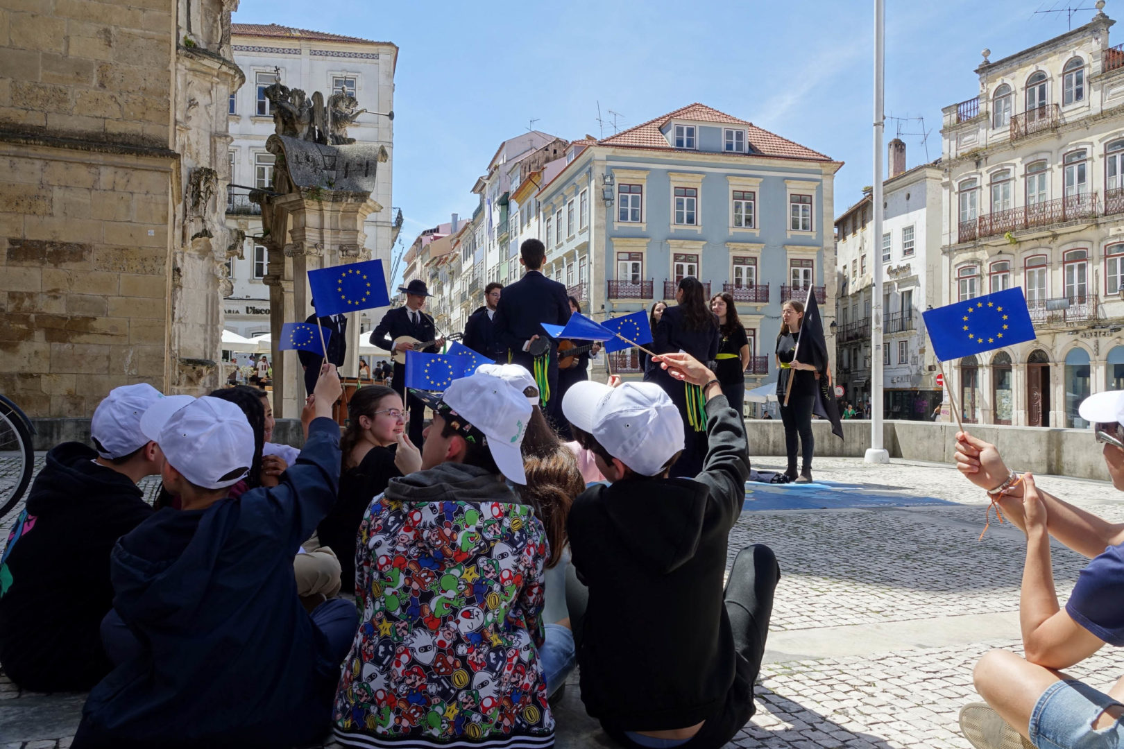 Em simultâneo, foram desenvolvidas atividades lúdicas ao ar livre na Praça 8 de Maio, em contexto intergeracional, promovendo, assim, o convívio e a partilha de experiências e saberes entre crianças, jovens e seniores. Este momento contou com a dinamização de jogos tradicionais europeus e, em particular, do jogo “À Descoberta da União Europeia”, e com atuações da Vitis Tuna da Escola Superior Agrária de Coimbra e do Grupo de Cordas da Associação ApoJovi.