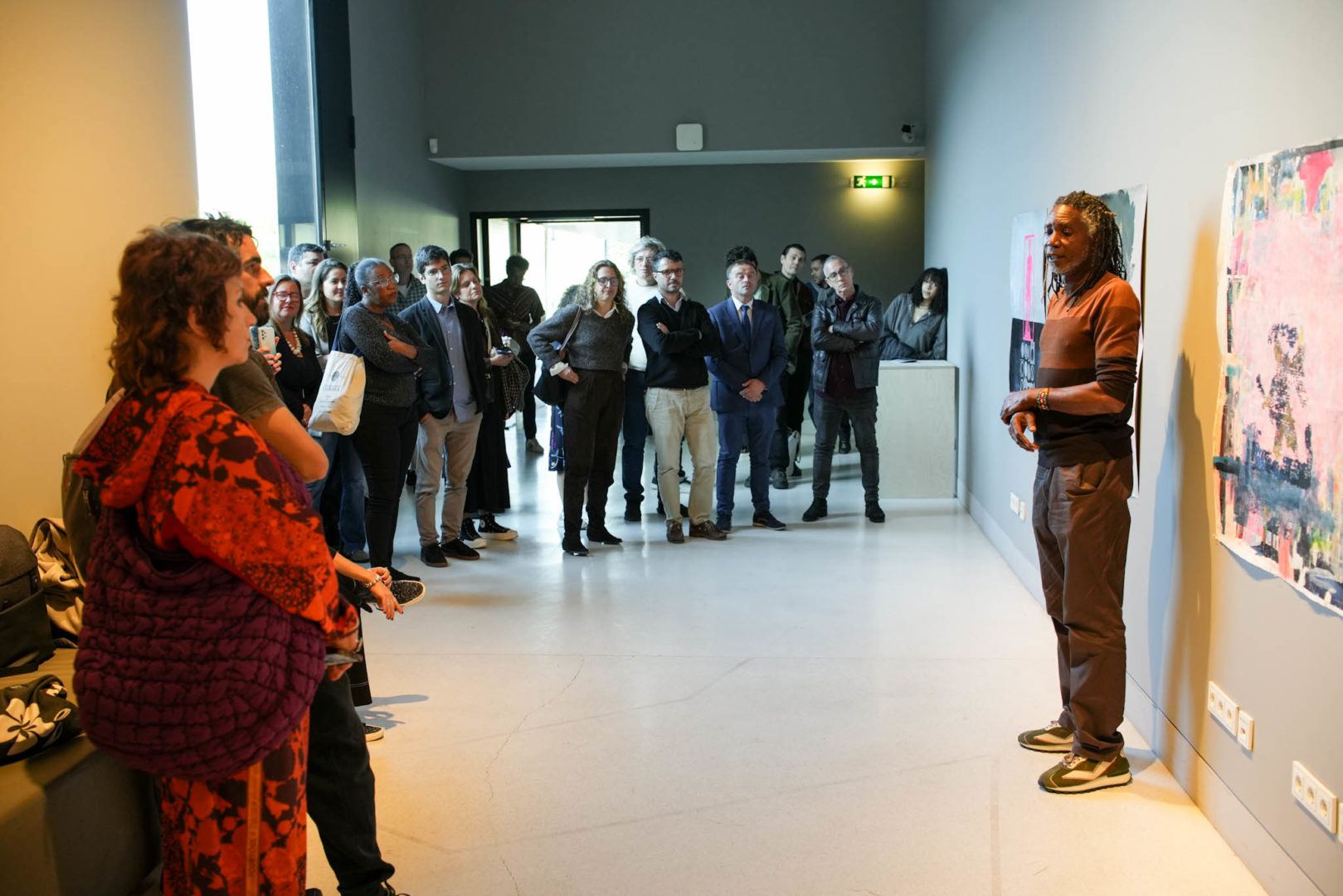 O projeto X-Men chegou hoje ao Convento São Francisco, com a inauguração da exposição “Entre Lugares”, do artista Babu e com curadoria de Pedro Vaz. A sessão contou com a participação da vereadora da Ação Social, Ana Cortez Vaz, da vice-diretora do CES, Antonieta Reis Leite, e da cocoordenadora do Observatório Masculinidades.pt, Tatiana Moura. A iniciativa contou, ainda, depois da inauguração da mostra, com uma conversa com Haydée Caruso, antropóloga e investigadora colaboradora CES, sobre o projeto no âmbito do ciclo “Masculinidades em Debate” do Observatório Masculinidades.pt.
