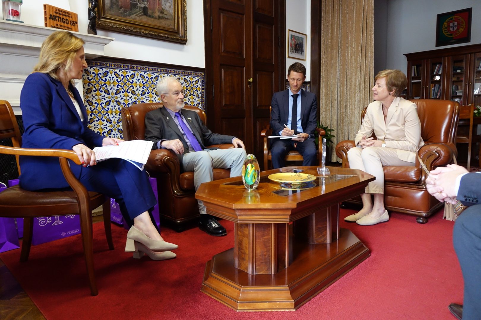 A relação de geminação entre Coimbra e a cidade de Halle (Saale) também foi abordada durante a conversa, nomeadamente as recentes ações de cooperação, ao nível educativo, cultural e de empreendedorismo, que têm como objetivo a partilha de experiências, o mútuo conhecimento e a cooperação estratégica municipal, tendo em vista o desenvolvimento sustentável e a criação de emprego.