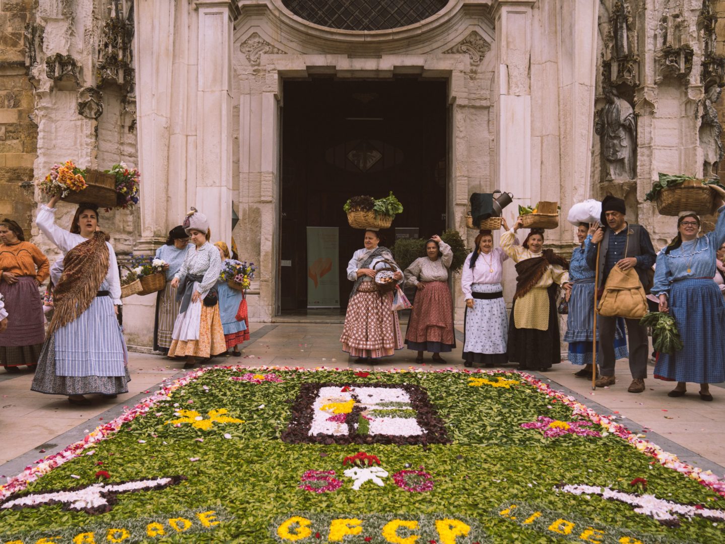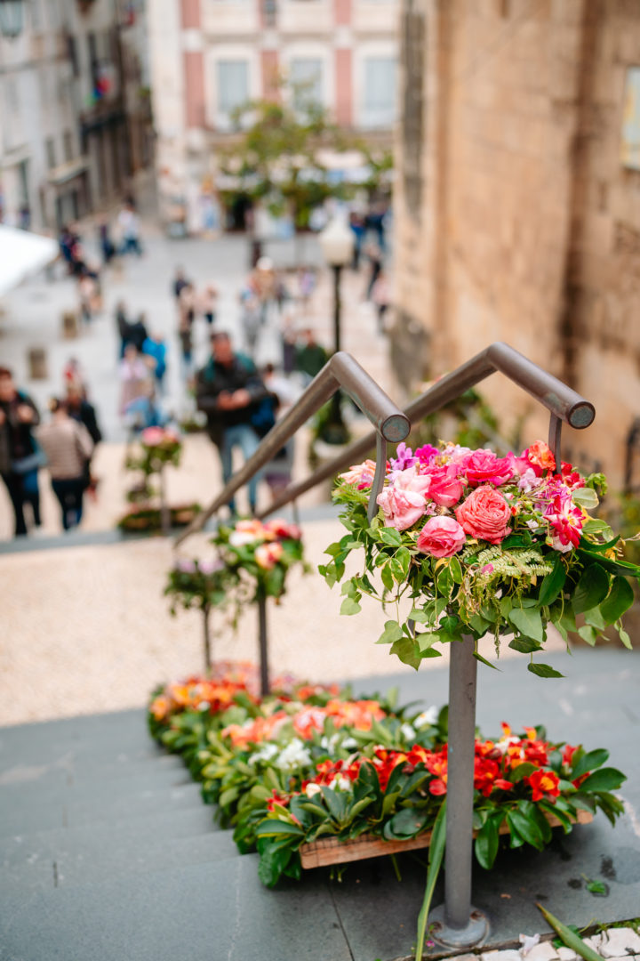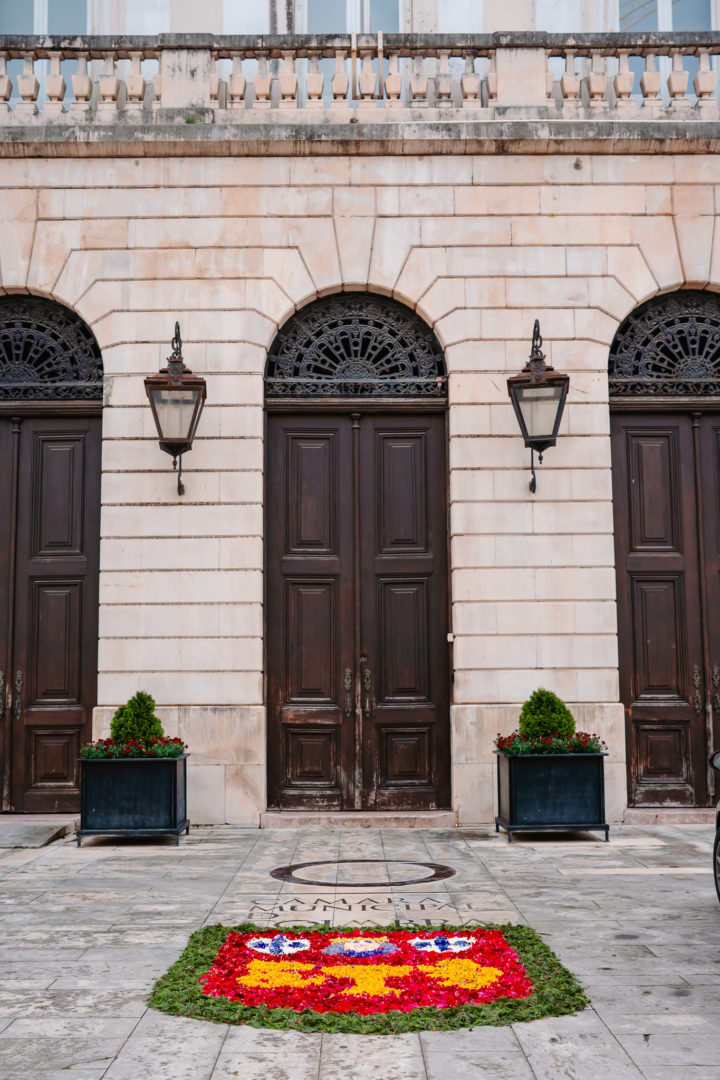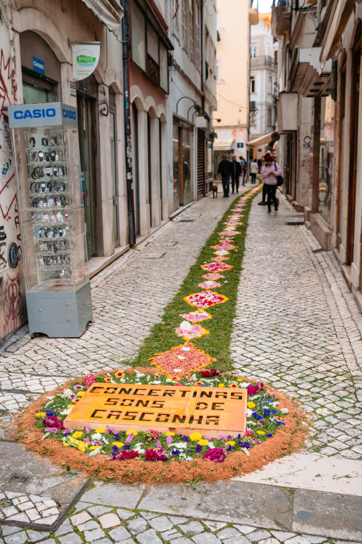Os inúmeros visitantes tiveram oportunidade de apreciar tapetes com pormenores de criatividade únicos no átrio do edifício da Câmara Municipal, nas rampas da Praça 8 de Maio, no patim da Igreja de Santa Cruz, na Rua Direita, Rua da Moeda, Rua da Louça, Rua do Corvo, Largo do Poço, Rua dos Sapateiros, Rua das Padeiras, Rua Paço do Conde, Largo Paço do Conde, nas escadas da Igreja de São Tiago, escadas da Igreja de São Bartolomeu e pelourinho da Praça do Comércio, nas Escadas do Gato e no Largo da Portagem.