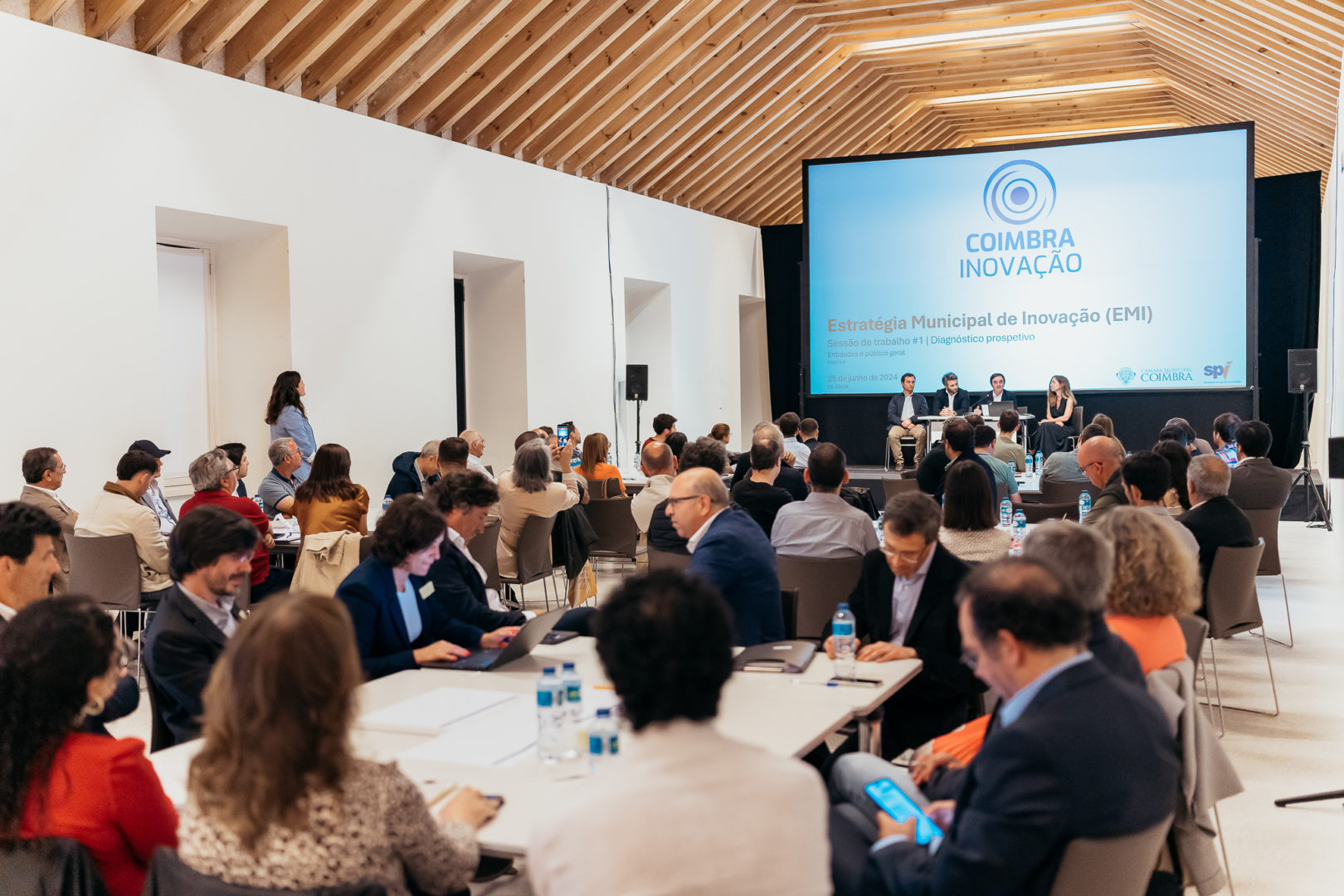 O objetivo da sessão de ontem, integrada na fase de diagnóstico da EMI, foi identificar, através de um modelo colaborativo, pontos fortes, fragilidades e desafios concelhios, tendo ainda sido possível recolher importantes contributos sobre possíveis caminhos e soluções para promover a inovação em Coimbra.