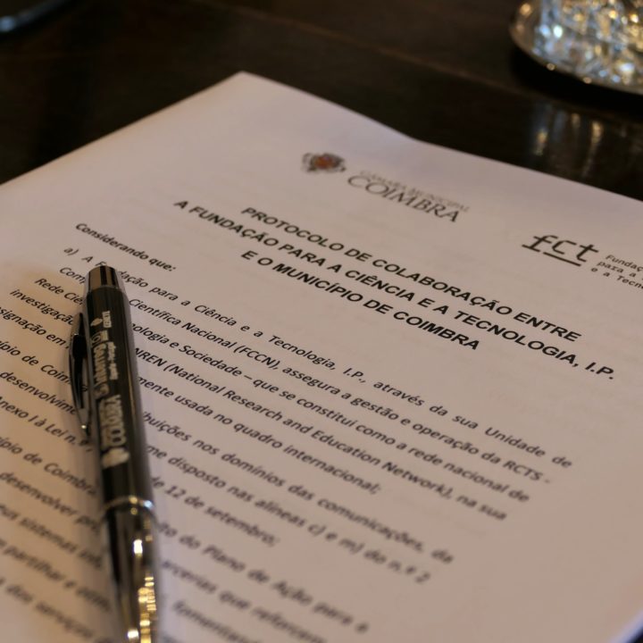 A assinatura do protocolo teve lugar hoje, dia 20 de junho, no Salão Nobre dos Paços do Concelho, e contou com a presença do presidente da CM de Coimbra, José Manuel Silva, e da presidente da Fundação para a Ciência e a Tecnologia, Madalena Alves.