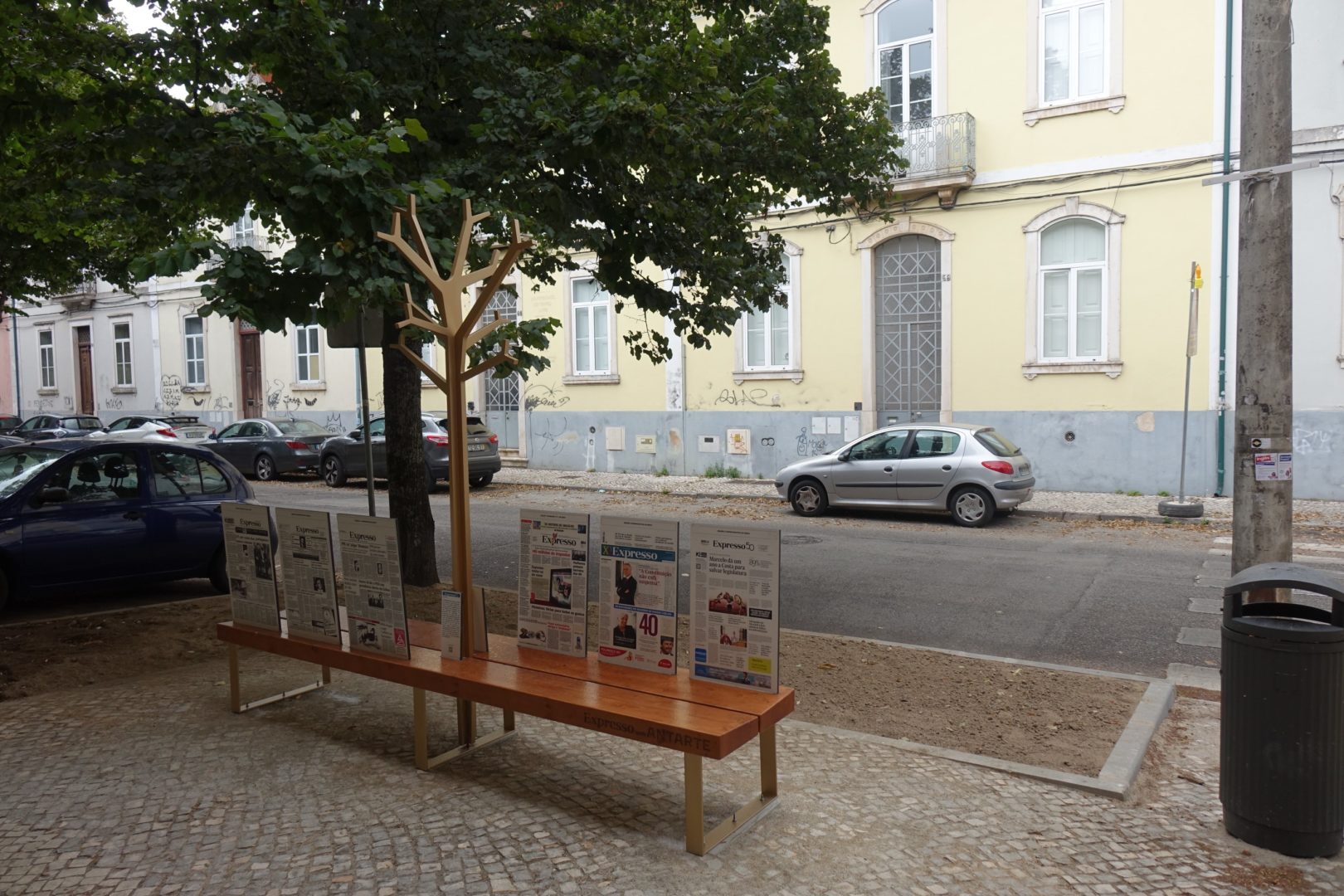 A obra foi criada, especialmente, para a ocasião, com o objetivo de ser um local de encontro e incentivo à leitura. Na altura, o banco do Expresso foi colocado na Rua Ferreira Borges, mas acabou por ser alvo de atos de vandalismo e a Câmara Municipal de Coimbra decidiu , agora, transferi-lo para junto da Casa Municipal da Cultura.