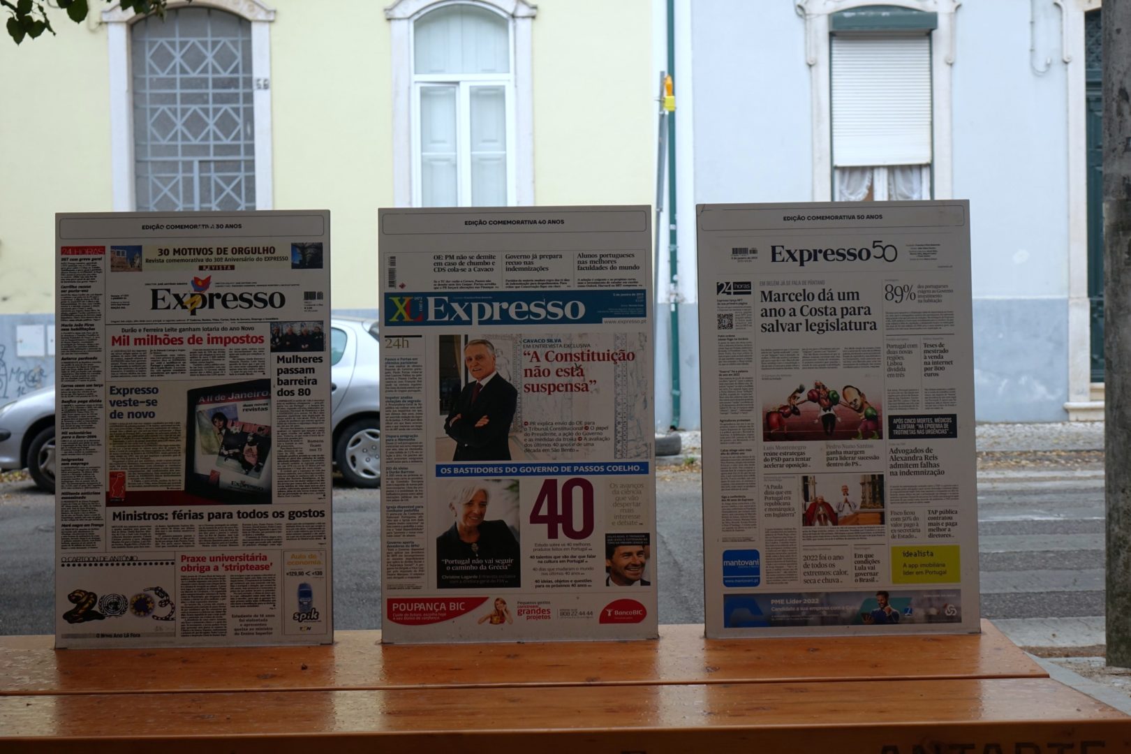 Recorde-se que a exposição “50 anos do Expresso”, composta por 26 mupis, um de enquadramento e 25 com as 50 capas mais emblemáticas, esteve patente na Praça da República de 4 a 16 de maio do ano passado. Cada mupi tinha um QRCode, que permitia aos visitantes descarregar as histórias de cada um dos 50 anos, em formato audioguia, ou ouvir no podcast especial dos 50 anos de Expresso.