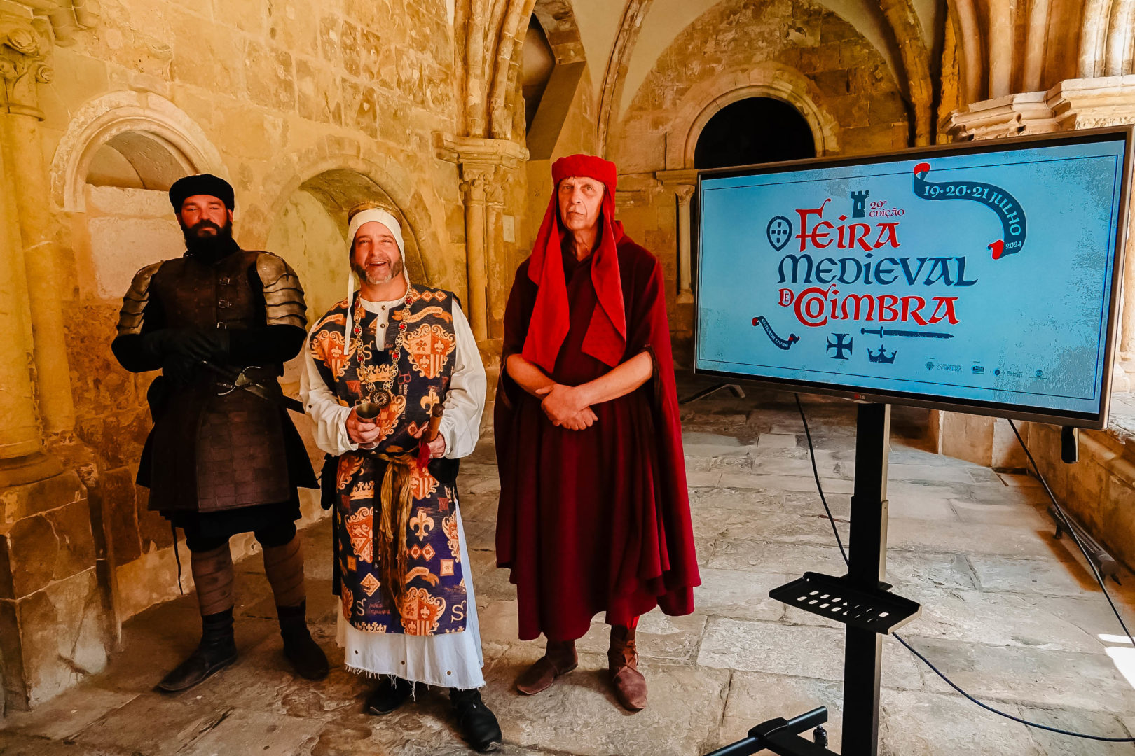 A 29ª edição da Feira Medieval de Coimbra, cujo mote para a edição deste ano são os “960 anos da conquista definitiva de Coimbra por Fernando Magno, ficando o governo da região entregue a D. Sesnando”, foi apresentada esta manhã, na Sé Velha, pelo presidente da Câmara, José Manuel Silva, pelo chefe da Divisão de Cultura da autarquia, Rafael Nascimento, pela presidente da Agência para a Promoção da Baixa de Coimbra (APBC), Assunção Ataíde, e pelo pároco da Sé Velha, Pedro Santos.