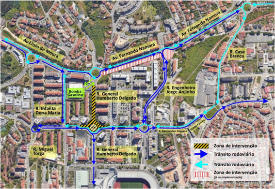 ➜ Interrupção da circulação rodoviária no segmento da Rua General Humberto Delgado entre a rotunda da ACIC e a Rotunda Artur Paredes (com acesso exclusivo a moradores e utilizadores do posto de abastecimento de combustíveis da CEPSA pelo seu topo nascente);