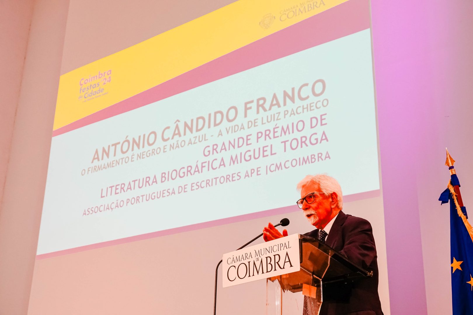 A cerimónia do Dia da Cidade, no Convento de São Francisco, incluiu a entrega de 17 distinções honoríficas a trabalhadores da autarquia, munícipes, associações e empresas, a entrega do Prémio de Literatura Biográfica Miguel Torga ao escritor António Cândido Franco, pela obra “O firmamento é negro e não azul – A vida de Luiz Pacheco”, e a assinatura do acordo de geminação entre Coimbra e Zamora, em que participou o autarca espanhol Francisco Guarido. Na entrega do prémio Miguel Torga, além do autor galardoado, usou também da palavra o presidente da direção da Associação Portuguesa de Escritores (APE), José Manuel Mendes.