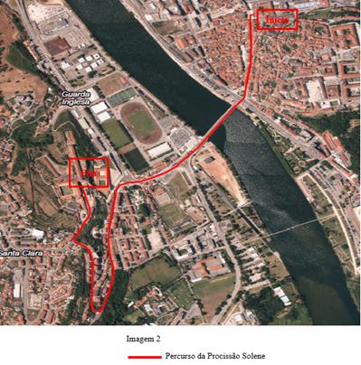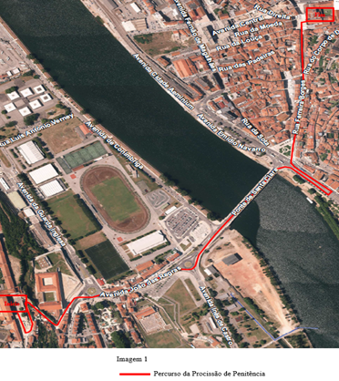 Assim, no que diz respeito à Procissão de Penitência, é proibida a ocupação do espaço público, com esplanadas e qualquer outro equipamento de apoio aos estabelecimentos, entre as 16h30 do dia 11 de julho e as 1h00 do dia 12 de julho, bem como é proibido o exercício da atividade de venda ambulante e de restauração ou bebidas não sedentárias, incluindo a venda ambulante de balões, castanhas, pipocas, algodão doce e atividades similares, bem como de artigos produzidos por artistas, entre as 10h00 do dia 11 de julho e as 1h00 do dia 12 de julho, em todo o circuito da procissão e vias próximas. Os locais abrangidos serão a Calçada Santa Isabel, Rua Mendes dos Remédios, Rua Carlos Alberto Pinto de Abreu, Rossio de Santa Clara, Av. da Guarda Inglesa (entre o Rossio de Santa Clara e a Rua Luís António Verney), Rua Feitoria dos Linhos, Rua António Augusto Gonçalves, Av. João das Regras, Avenida Inês de Castro, Avenida de Conimbriga (entre a Rua Luís António Verney e a Avenida João das Regras), Ponte de Santa Clara, Largo da Portagem, Avenida Emídio Navarro, Rua Olivença, Rua da Alegria, Rua Couraça da Estrela (no troço entre o entroncamento com a Rua da Alegria e o Largo da Portagem), Rua da Sota, Rua Ferreira Borges, Rua Visconde da Luz, Praça 8 de Maio, Rua da Sofia (entre a Praça 8 de Maio e o entroncamento com a Rua João de Ruão) e Rua Olímpio Nicolau Rui Fernandes.