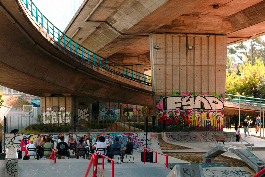 O segundo dia (5 de setembro) evidenciou as temáticas do hip-hop na construção de comunidades e das residências artísticas em relação com a criação no território, com intervenções de Adailton Moura, Daniel Belo, Ricardo Farinha (Observador, Rimas e Batidas), Luís Vieira (Shark), Tiago (TK) (Roda o Centro), Isabel Craveiro (O Teatrão), Carlos Braz (RUC), Daniel Dias (Público), João Silva (Bluehouse), Rui Ferreira (Lux Records), José Miguel (Jazz ao Centro Clube), Pedro Dias de Almeida e Isabel Simões (RUC), no Parque Municipal de Skate. Depois de uma visita à Bluehouse, o encontro culminou com o showcase dos Duques do Precariado, a que se seguiu um cineconcerto no Pátio do CAV, protagonizado por João Mortágua, Luis Pedro Madeira, Gonçalo Parreirão e Ismael Silva.
